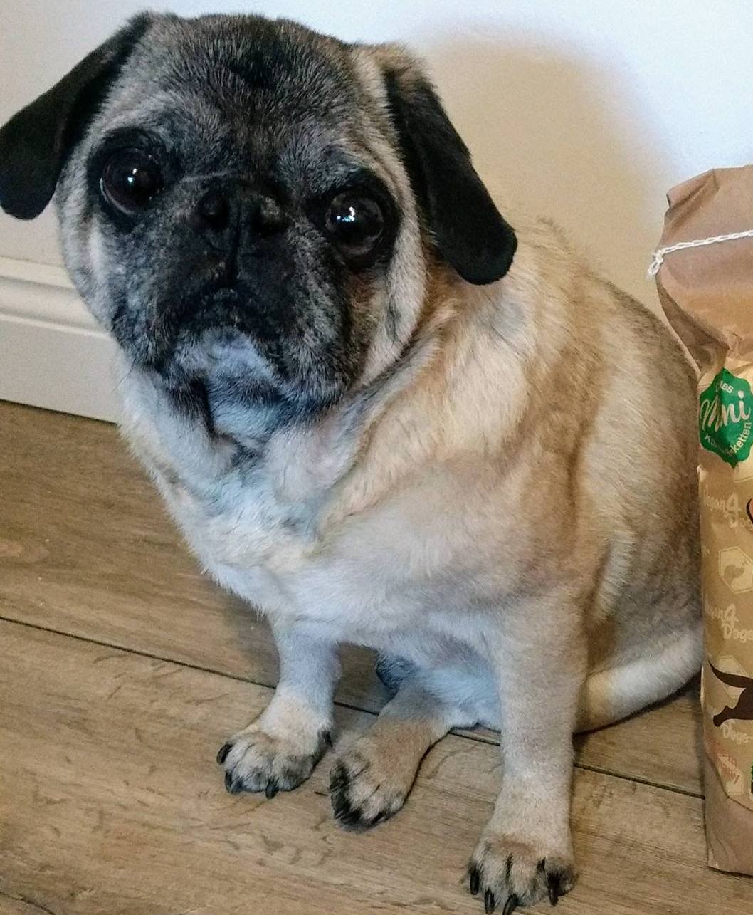 Hallo alle Hunde Freunde, ich bin Inga Borgia und ich wohne in Gosen. Seit ich mir die beide Vorderbeine gebrochen hab, darf ich nicht mehr rennen und deshalb neige ich dazu einige Fett Röllchen zu entwickeln. Dann habe ich die superleckeren veganen Bröckchen „Greta“ entdeckt und die füllen meinen Magen und halten mich schlank!