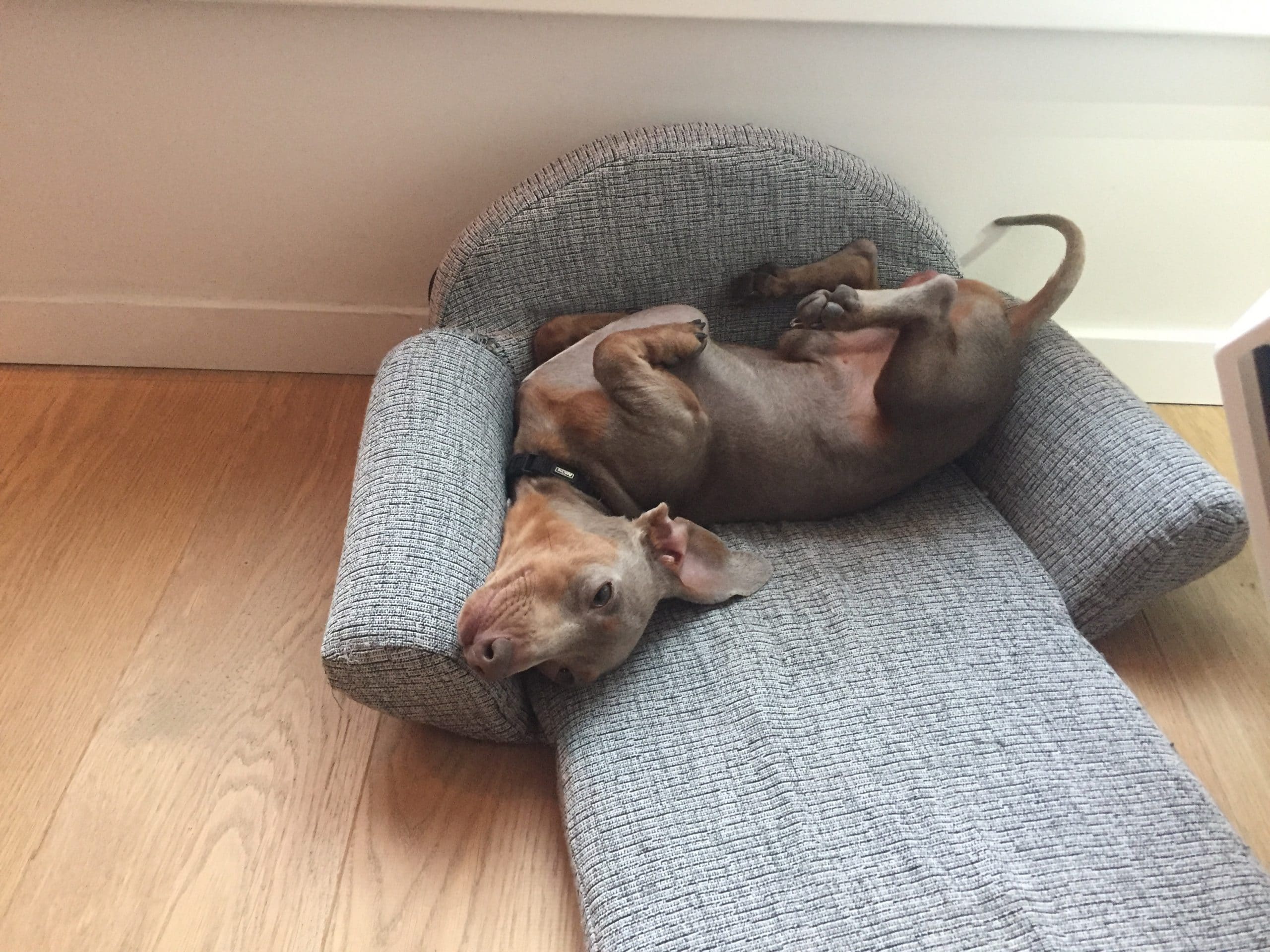 Tate ist meist ein Dackel durch und durch. Stur und eigenwillig. Mit der Nase voraus kann er schonmal unsere Rufe gekonnt überhören. Tate ist sehr liebes- und kuschelbedürftig. Er sucht unsere Nähe und liebt es, sein Beinchen zu heben, wenn wir nach Hause kommen.Er spielt sehr gerne mit anderen Hunden – doch der „Mut“ des Dackels hält sich bei Tate noch bedeckt.