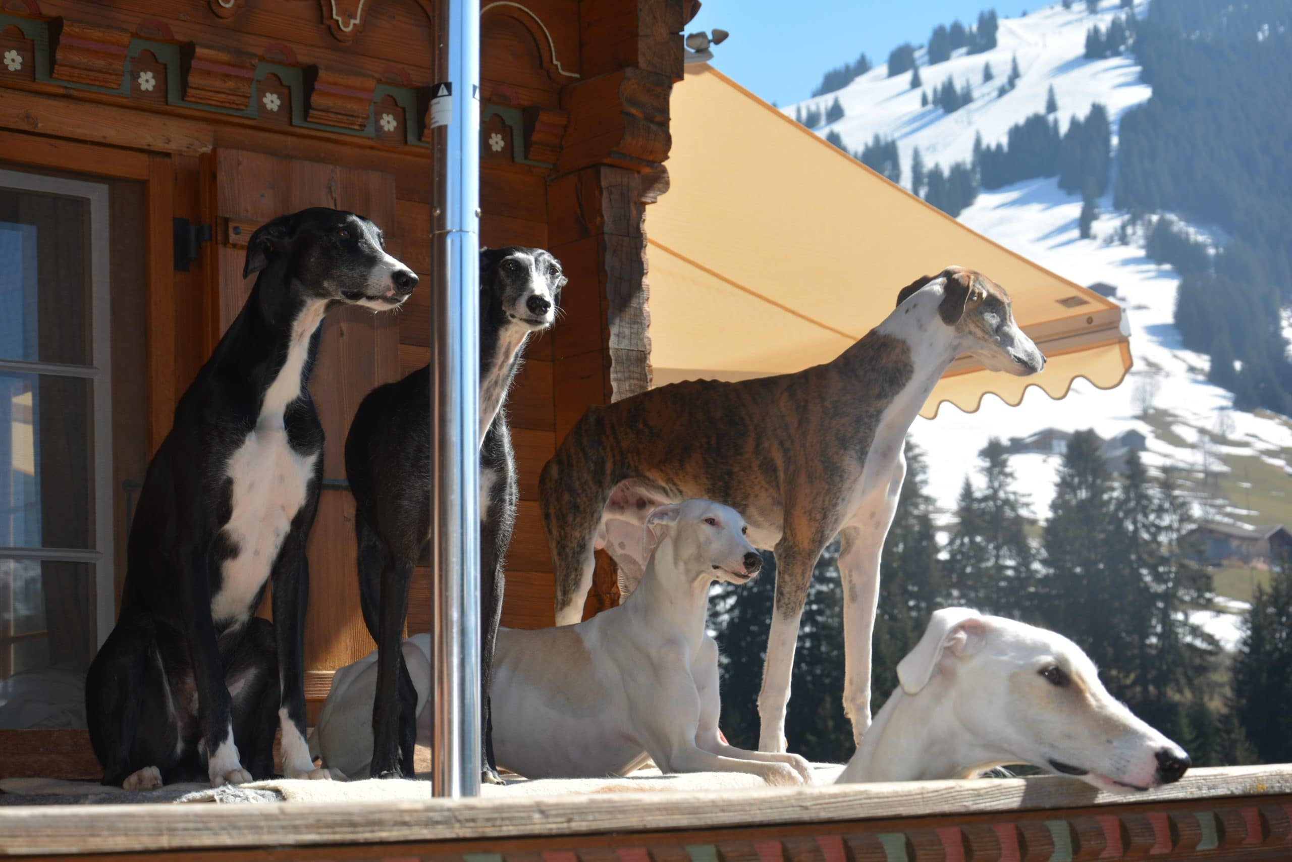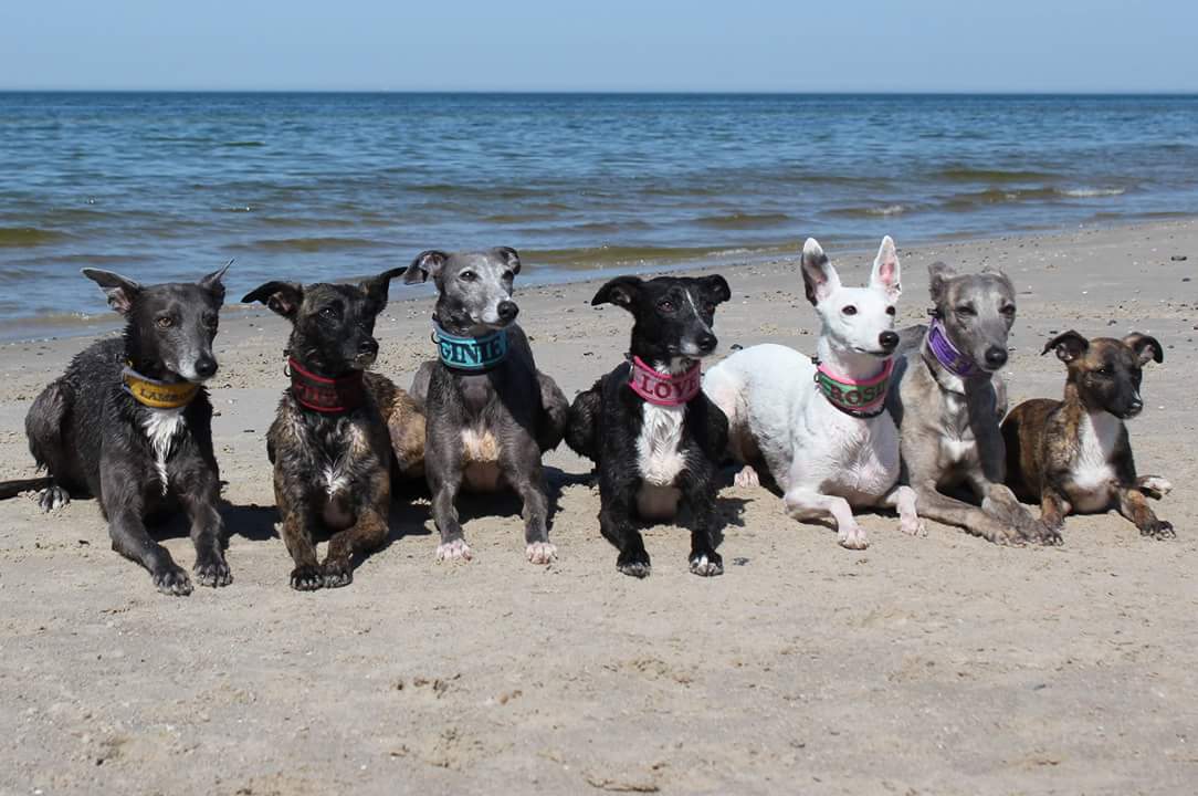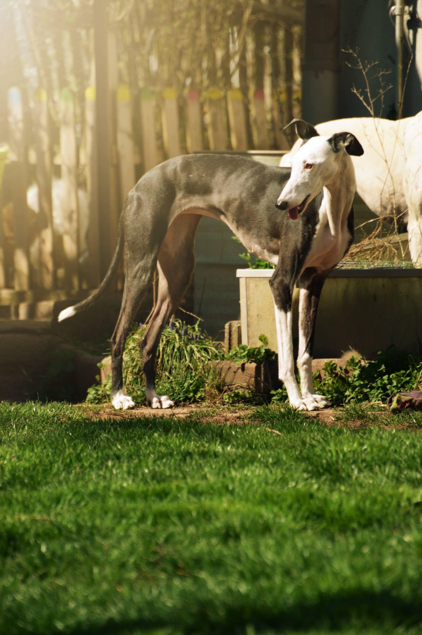 Ingvild und Torun sind zwei vegane Rettungs-Lurcher aus Irland, die jetzt in Schweden leben. Ingvild (weißes und goldfarbenes Fell) ist 4,5 Jahre alt und lebt seit ihrer Adoption vor drei Jahren vegan. Torun (braun gestromtes Fell) ist bald 1,5 Jahre alt und lebt seit seiner Adoption vor vier Monaten vegan.