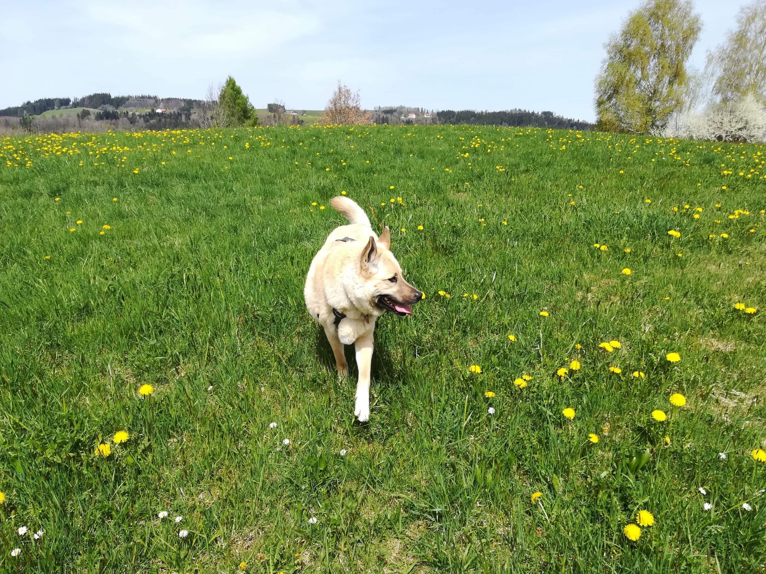 Nala ist vegan seit Tag 1. Sie liebt es zu essen und macht auch so ziemlich alles dafür 😅. Sie tobt ziemlich gern draussen herum, ist bei den Kindern aber die Ruhe selbst