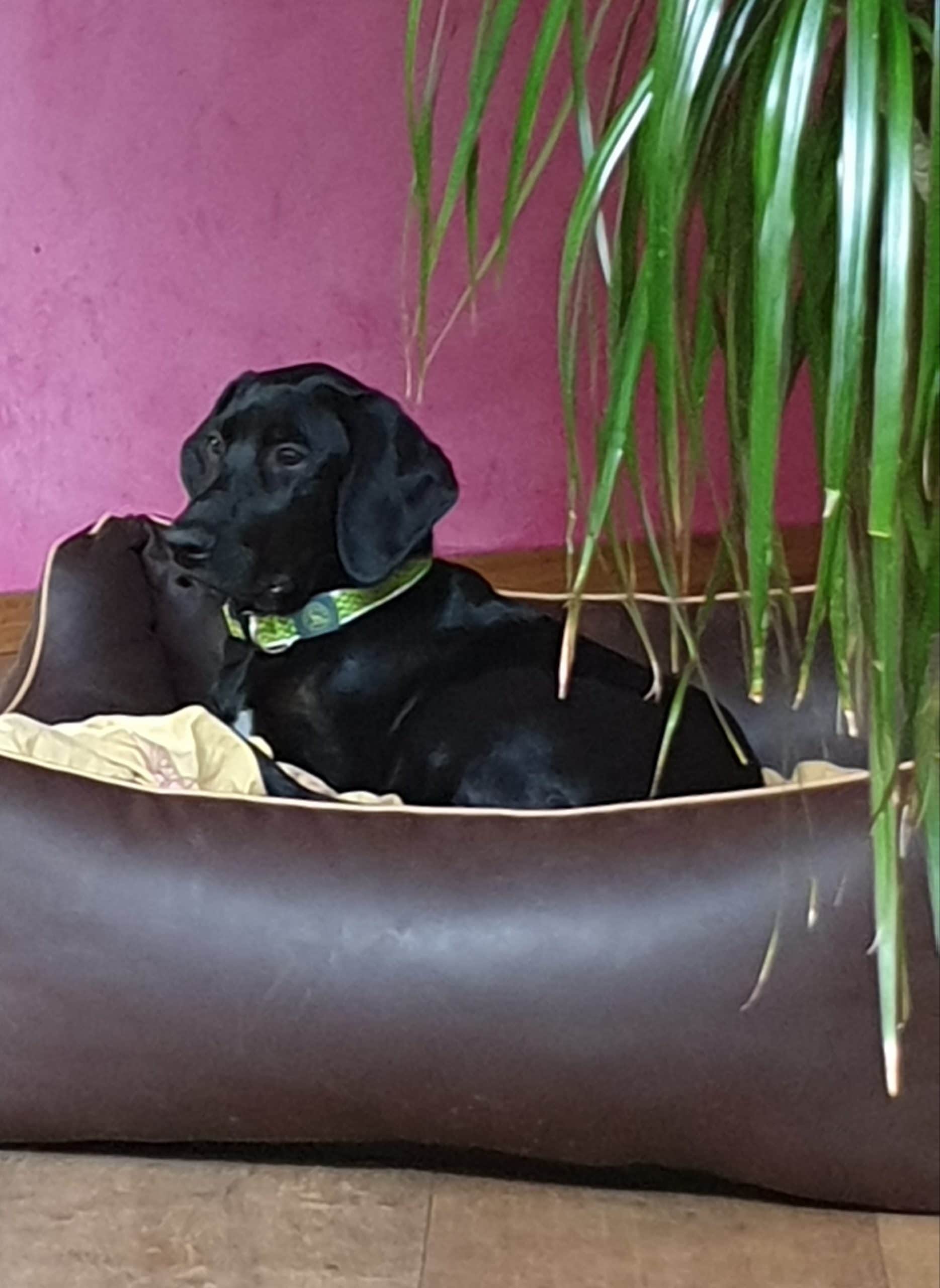 Er ist ca. 8 Jahre alt (Stand 2021) und lebt seit 2 Jahren bei uns. Er war vorher 3 Jahre bei ProAnimale in Polen und wurde bereits dort vegan/vegetarisch ernährt. Greta verträgt er gut und mit ein bißchen Obst oder Gemüse sowie Hafer/Reismilch angereichert ,isst er das auch gerne. Aber was läßt ein Labi auch schon stehen?!