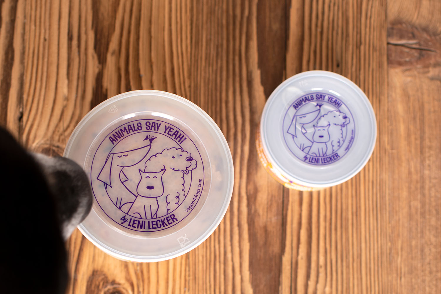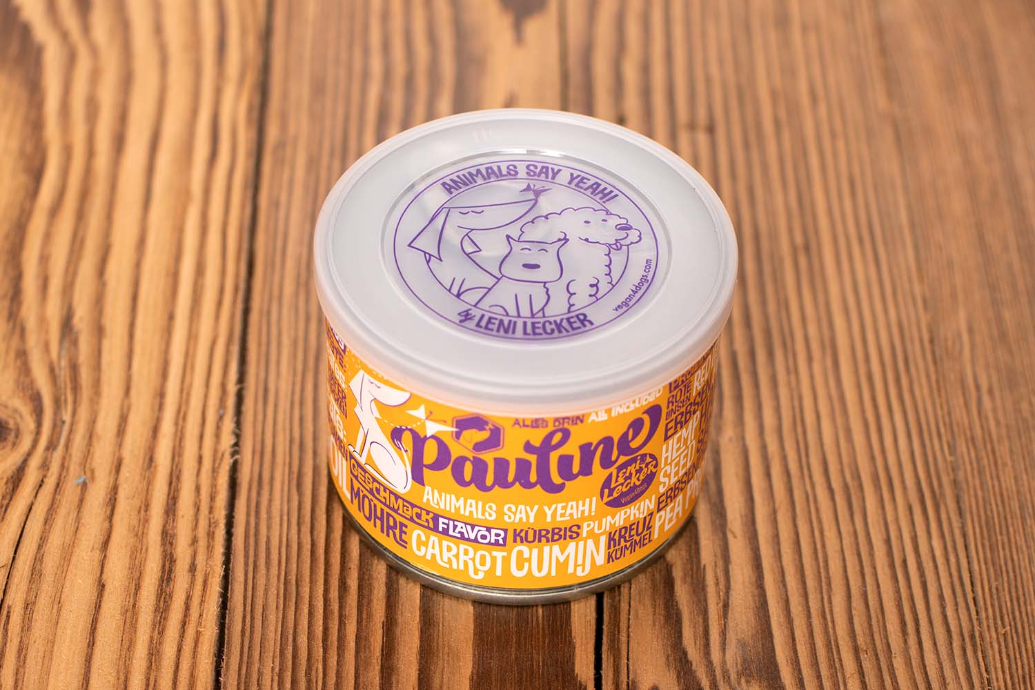 The lid with the family portrait of our Vegan4Dogs Family keeps your opened Pauline tin fresh so that it still tastes good the next day or the day after.