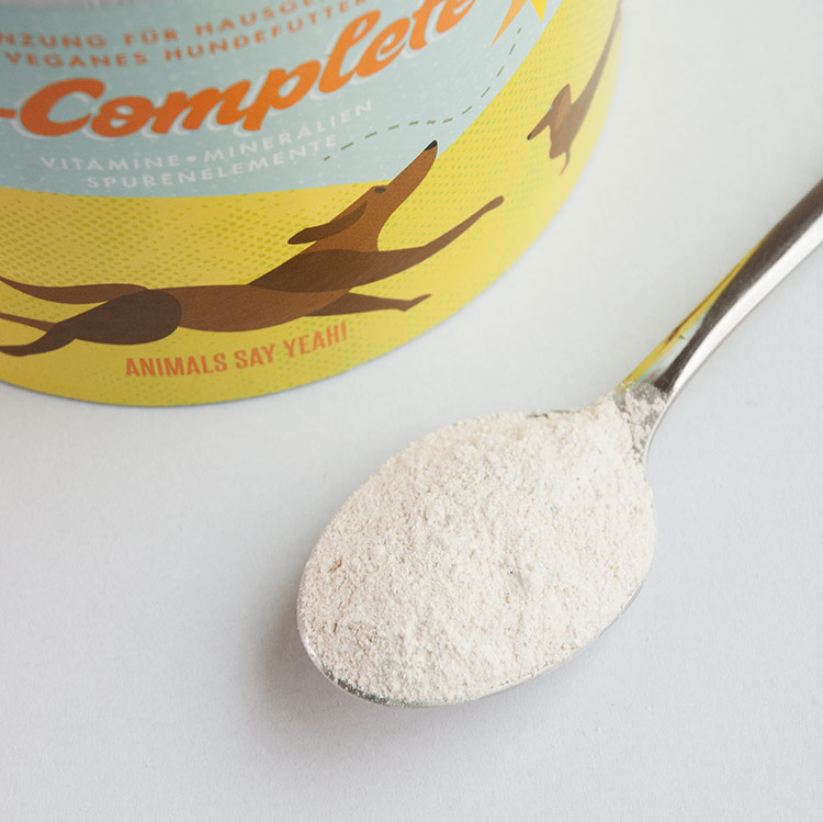 Supplement for homemade vegan dog food 'Made in Germany'.