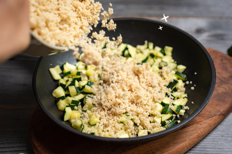 White Beans with Couscous and Zucchini1 daily serving for a 15kg dog (33 lb)And it's courgette season again! This green vegetable is harvested in June and August in the local fields, but there is also a great regional offer until autumn. Botanically speaking, courgettes belong to the pumpkin family. In our latitudes, it is a very easy-to-care-for plant that can reach up to 5 kilograms if not harvested beforehand. They also contain a good portion of vitamins, such as vitamin C. In addition, they also score with potassium. Among other things, this mineral supports a healthy heart rhythm and prevents cardiac arrhythmias. Combined with couscous, valuable nutrients such as iron, niacin, magnesium and proteins are added. White beans also bring iron into the game, can bind cholesterol and toxins and are a valuable source of protein. Fats also play an important role in a balanced dish, so a little oil along with cashew puree is a great way to round things up. Cashew butter in particular stands out with calcium, phosphorus and magnesium. The combination of ingredients complements each other perfectly and tastes good too!