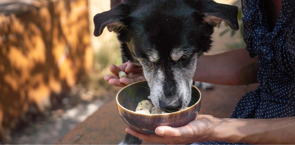 Soup, mush and dumplings ā Preferences are diverseThe consistency is quite essential for the acceptance of food I have noticed. Eddie especially likes dumplings and vegetables that he can chew vigorously. Soup, on the other hand, he doesnāt like and he canāt be lured with mush. However, other dogs see this completely differently. Some like mush and other four-legged friends like soup to slobber on.Basically dog food should be prepared in such a way that it can be digested easily, e.g. by pureeing or cooking or both. In order to still get food for Eddie that he can grasp with his teeth and plunge into his throat, I like to make dumplings, coins or sausages out of a dough of e.g. lentils and oat flakes with V-Complete and oil. The whole thing can of course be mixed with some liquid into a mush. The vegetables are usually for chewing. Depending on the vegetables, the nutrients are absorbed even better by pureeing or grating.Soups can also be prepared very well and are particularly suitable for dogs that can chew badly or have only a few teeth. However, this is not a necessity for a soup preference.In order to maintain the dental health of your companion, it makes sense to regularly offer something hard to chew. You can use hard bread for this e.g.Also kibbles can be given dry for crunching, or soaked, so that it already dissolves. Everyone to their taste.What does your dog especially like?