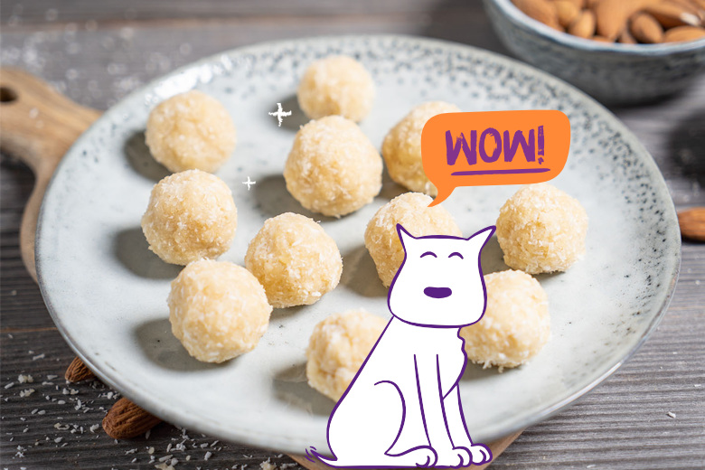 A treat for our loved ones, made with just two ingredients by Karin from the FB group 'Vegan Hund!? Ja klar!' These little almond coconut balls are not only totally easy to make with only two ingredients, but are also the perfect treat for our four-legged friends. This shows once again that it doesn't always have to be super complicated, but that a great snack can also be made from two simple ingredients, which, by the way, not only tastes good for dogs, but can also tempt us to snack on themš.AlmondsContain high quality protein, unsaturated fatty acids, magnesium, calcium and copper. They also have B vitamins and vitamin E.Coconut flakesAre rich in potassium, copper, magnesium, iron, zinc, phosphorus and dietary fibre. They also contain vitamin B6 and pantothenic acid.
