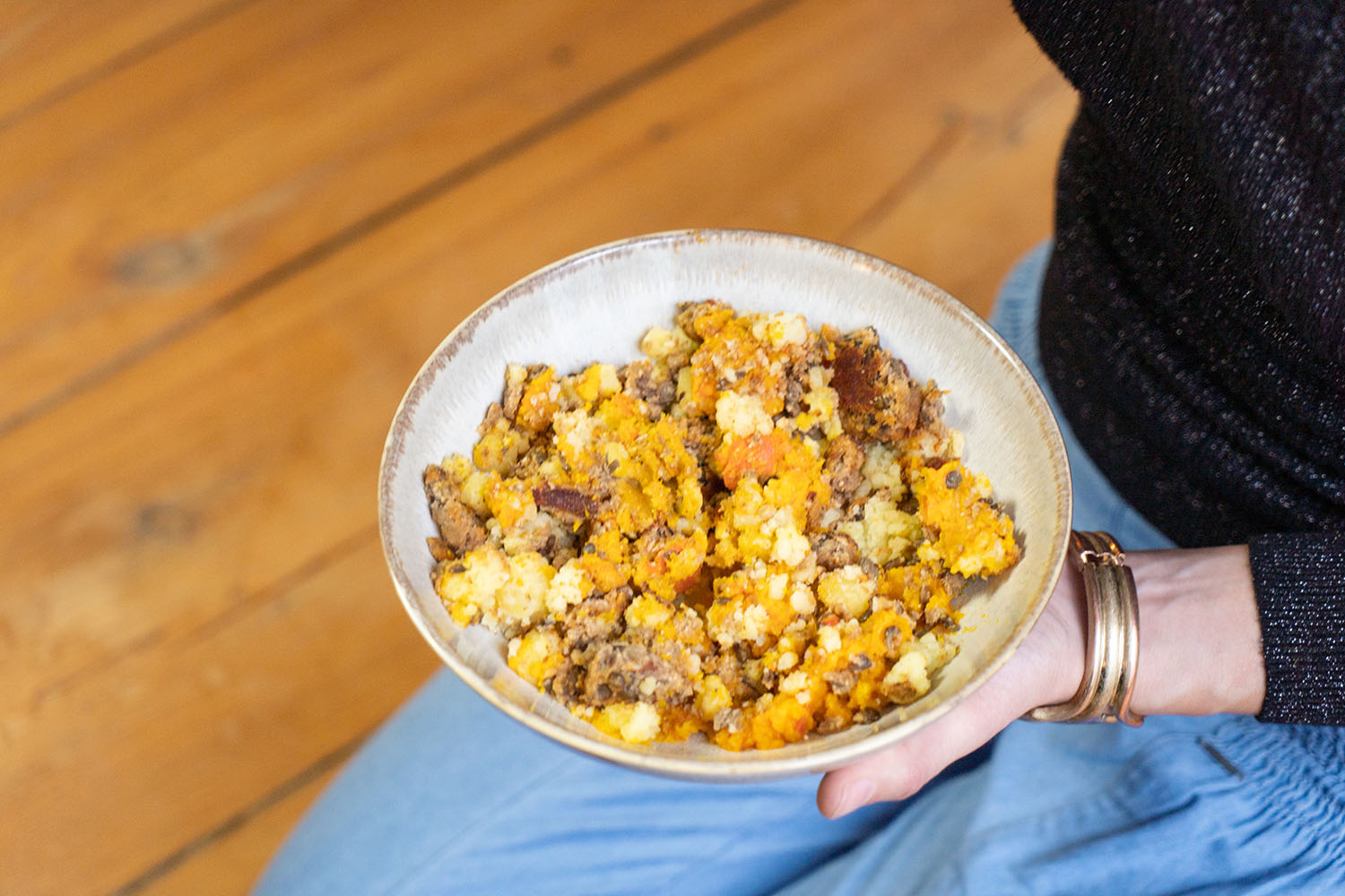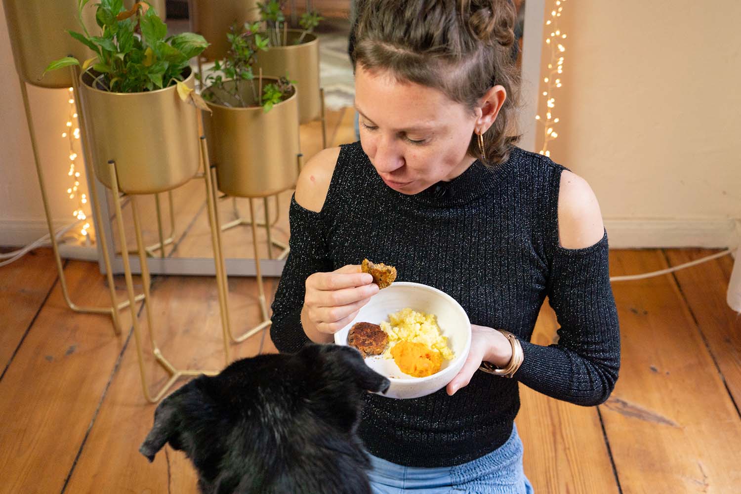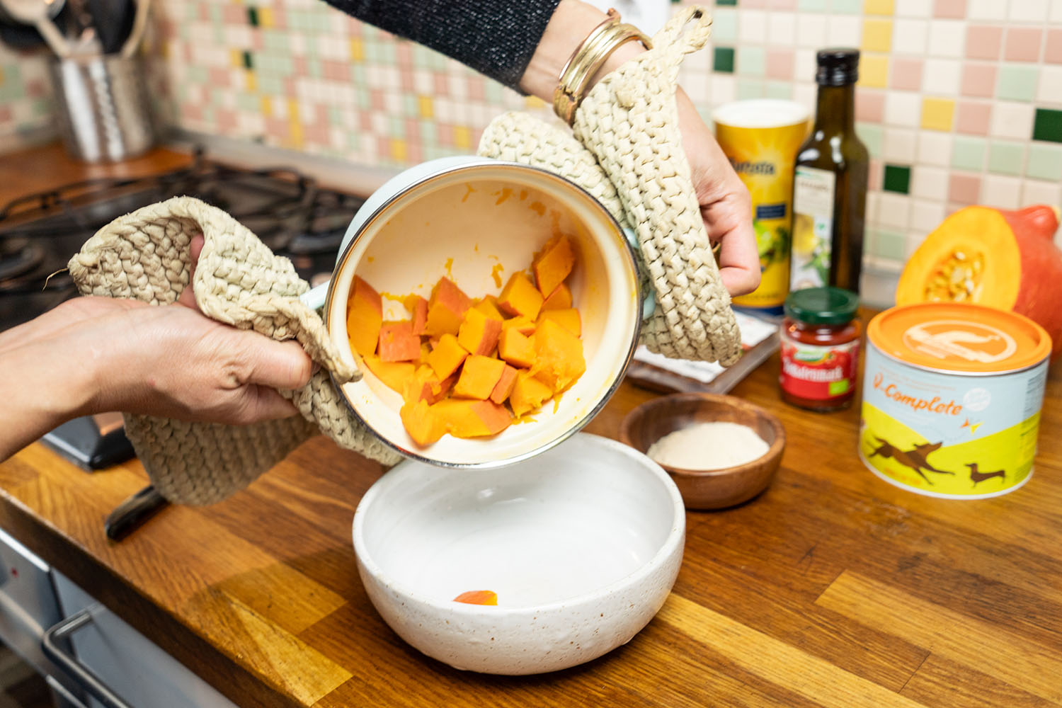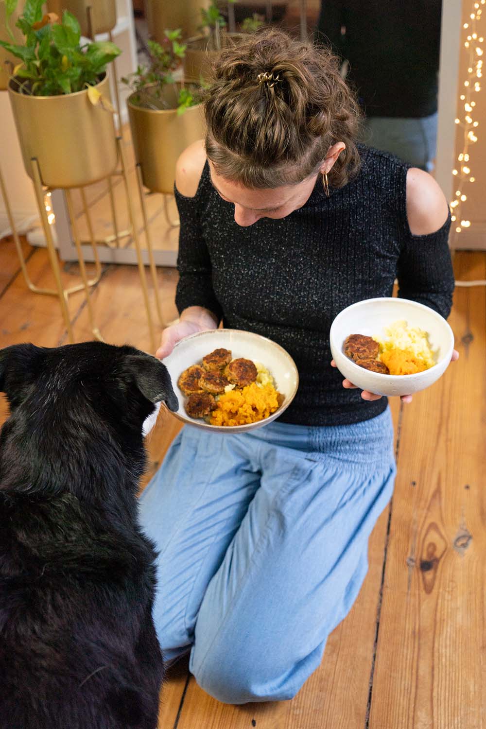Pumpkin, potatoes, lentils, tofu and dog? The perfect combination in winter. And this Christmas recipe is not only delicious for our canine companions, but is also great for filling our tummies. So there's no double effort and we can feast together. Simply omit V-Complete for your plate and everything fits.
