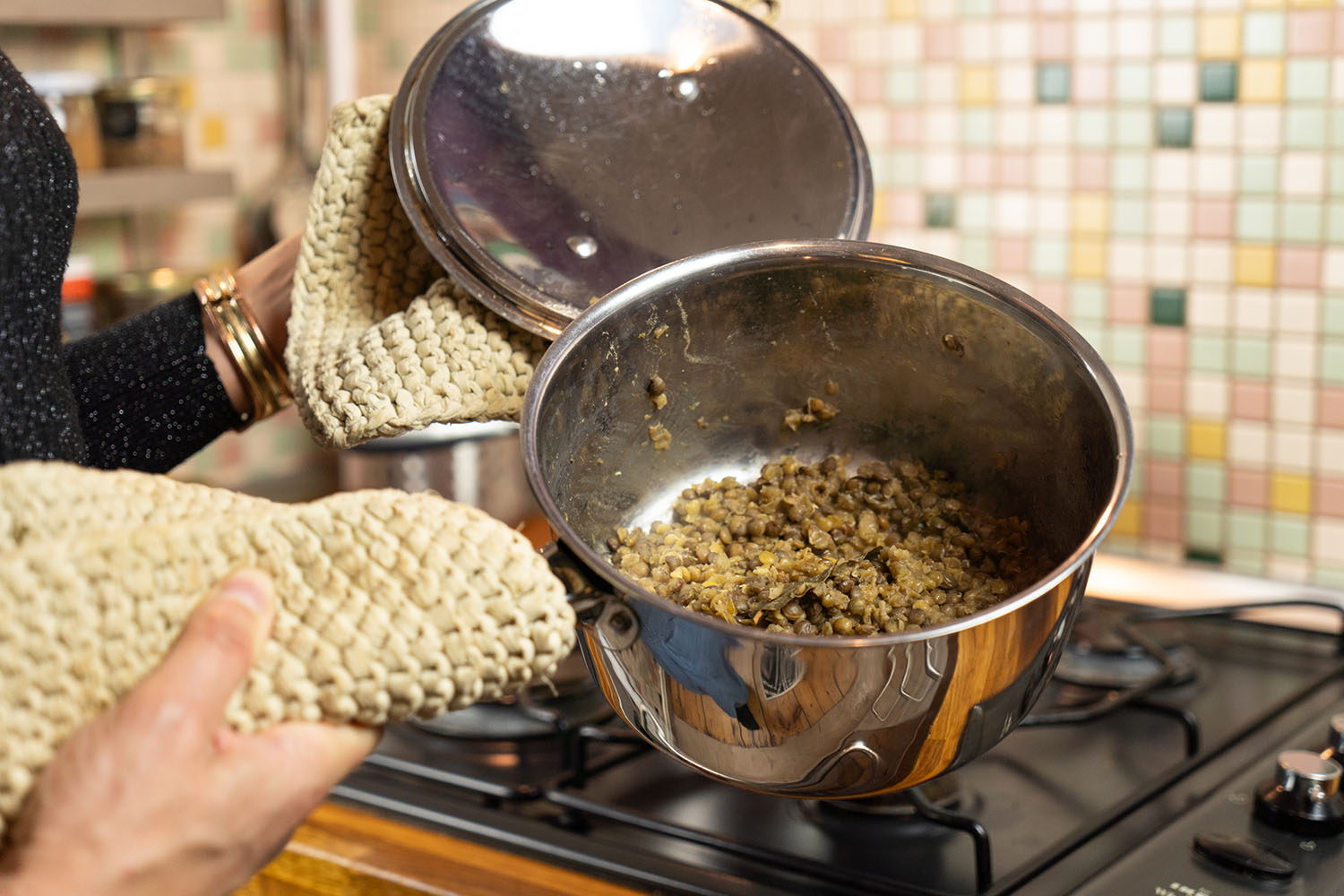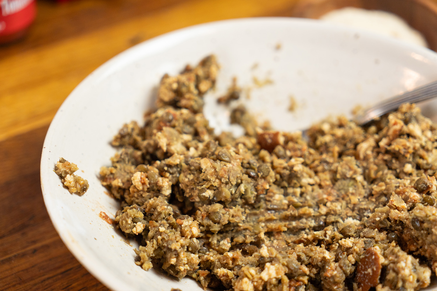 Mash the lentils well with a fork, or if you have a blender, you can also use it to finely puree the lentils.