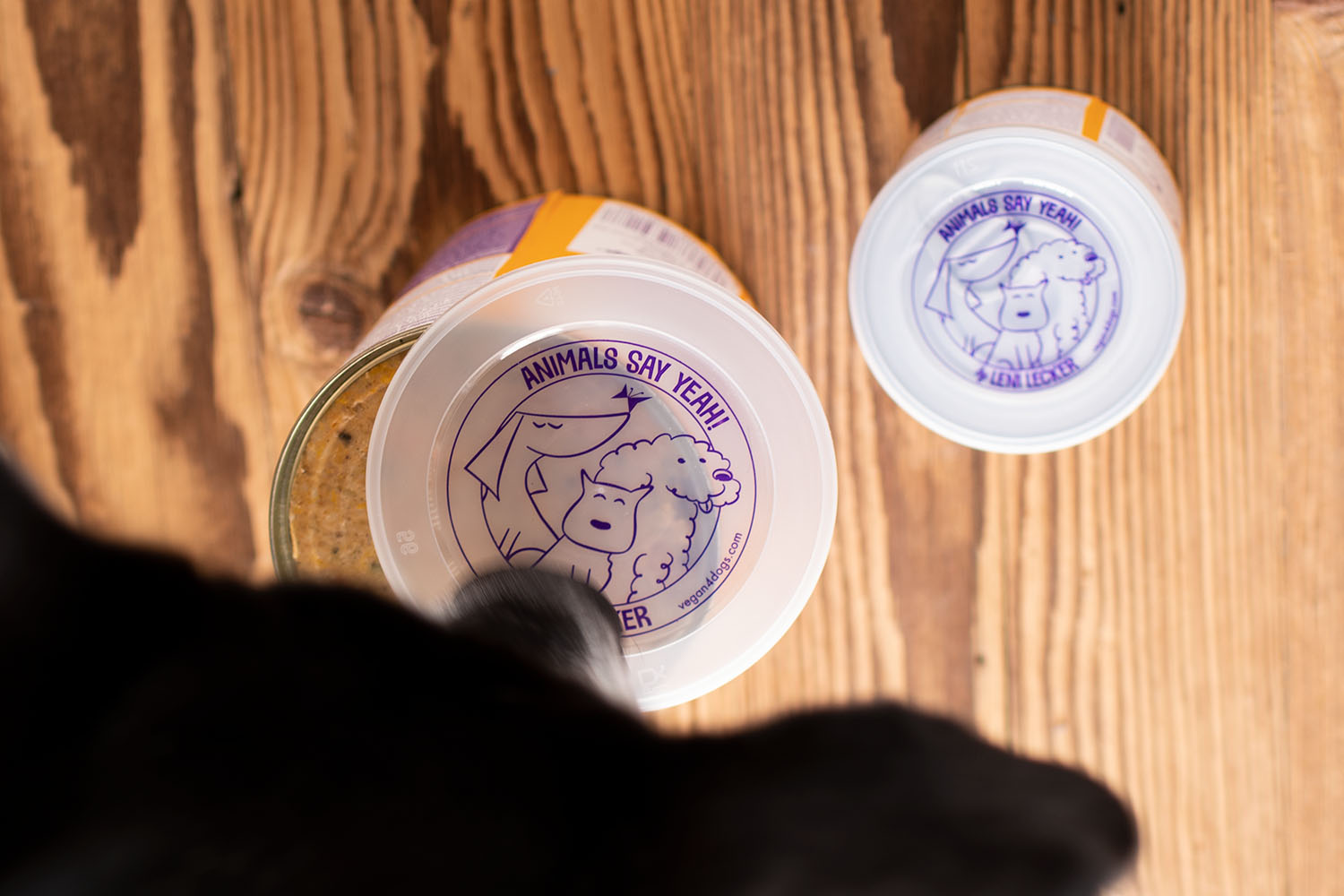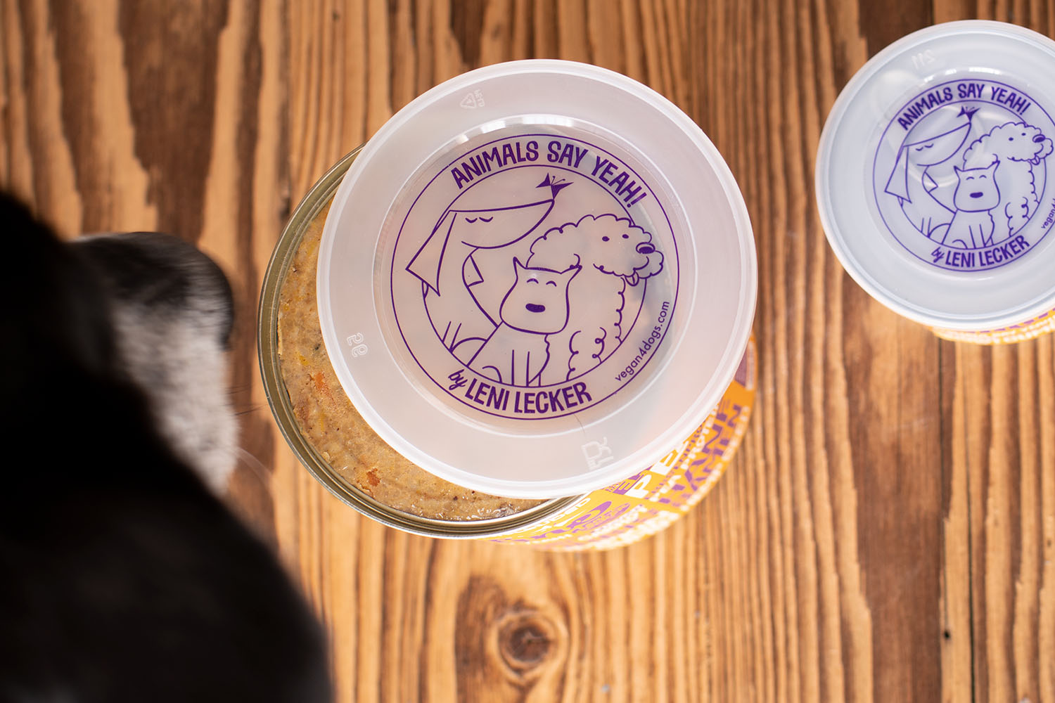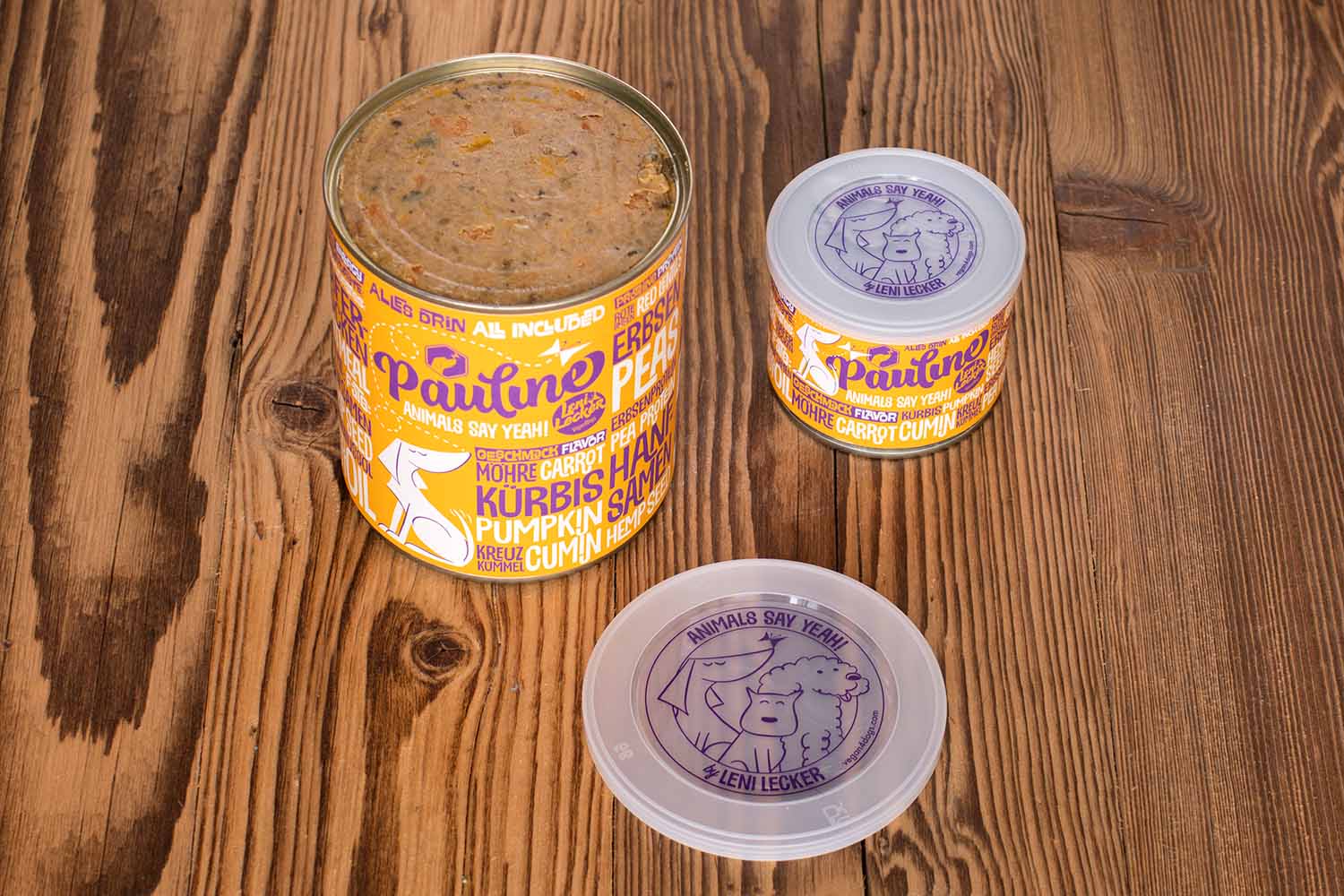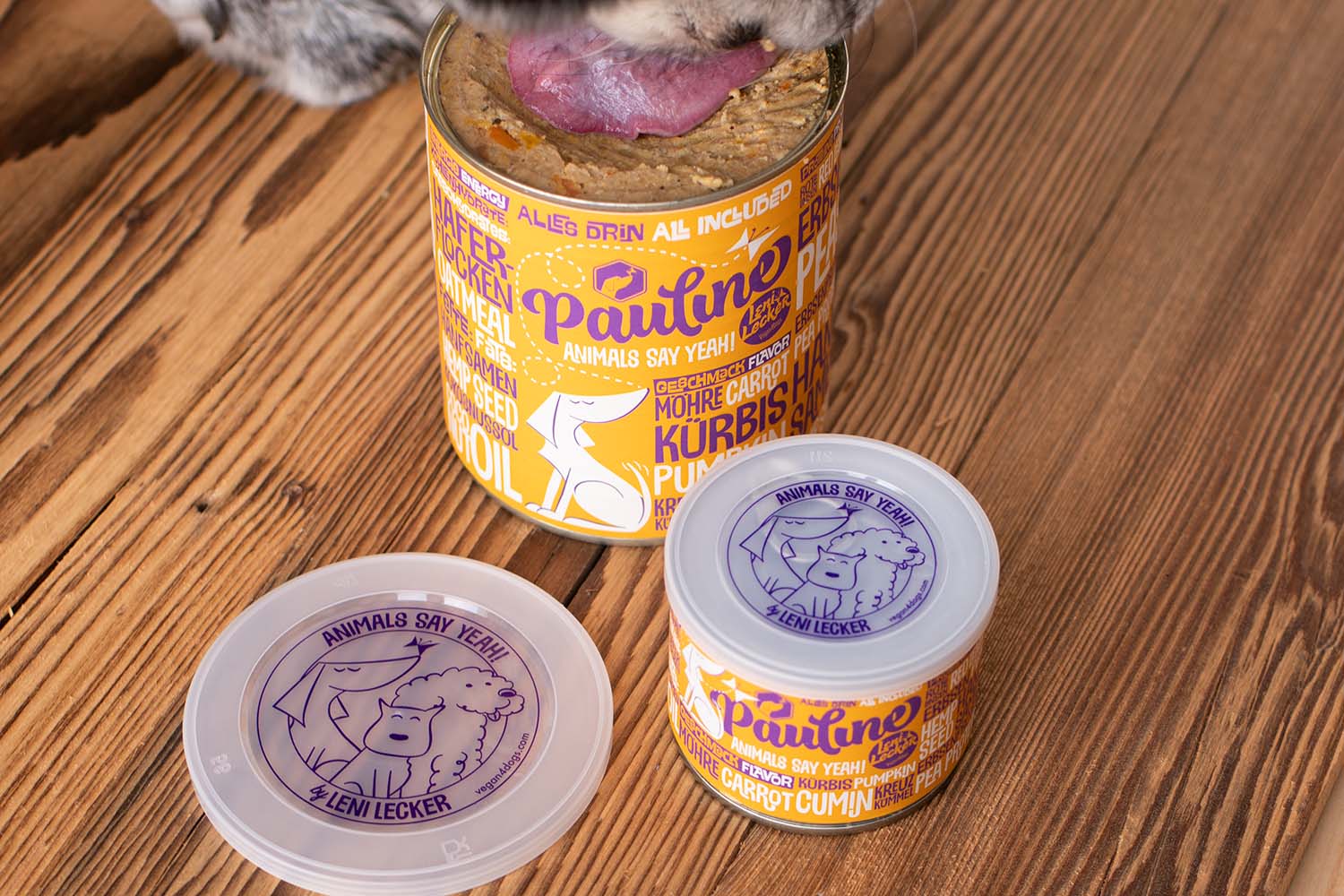 The lid with the family portrait of our Vegan4Dogs Family keeps your opened Pauline tin fresh so that it still tastes good the next day or the day after.