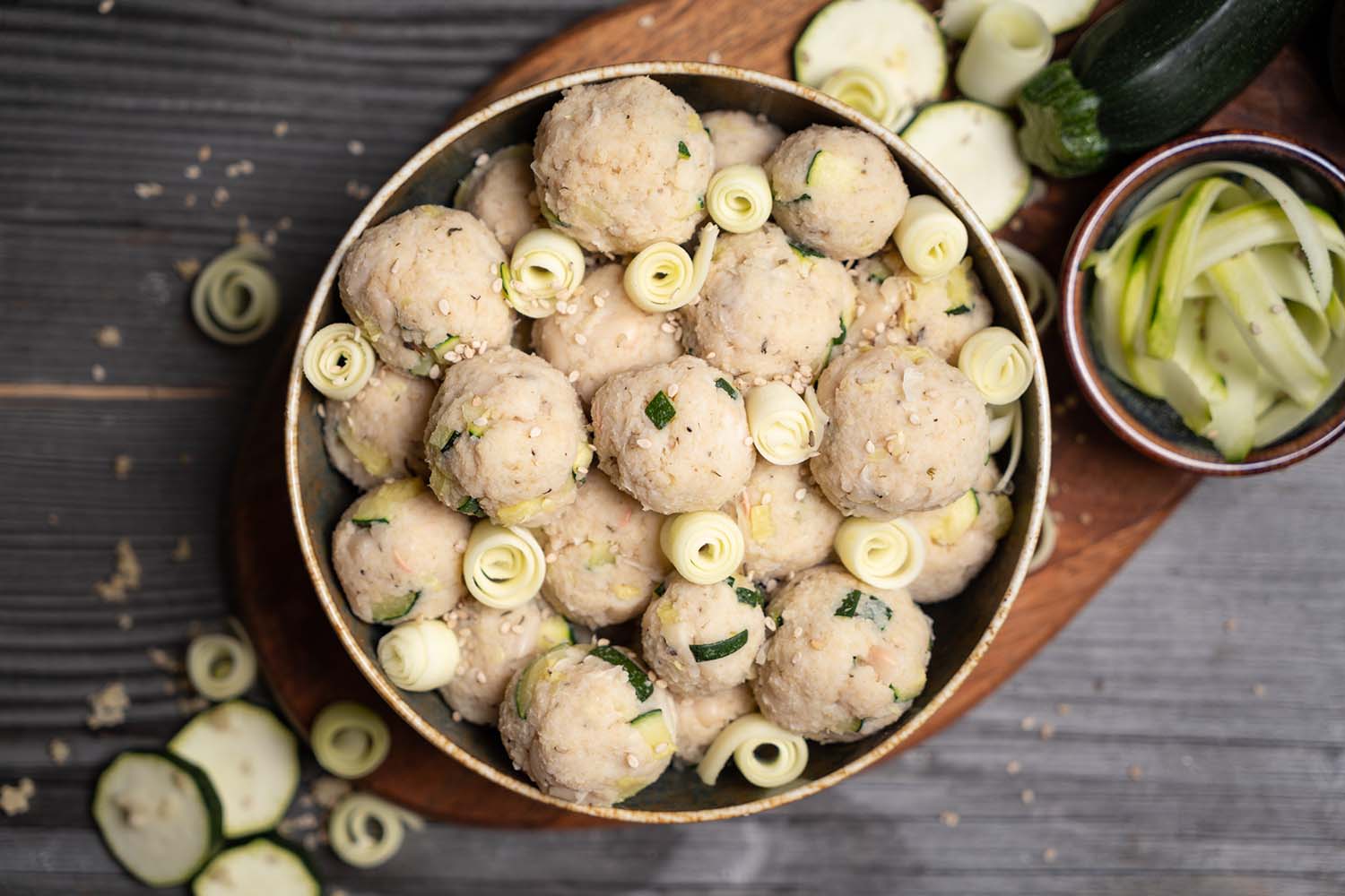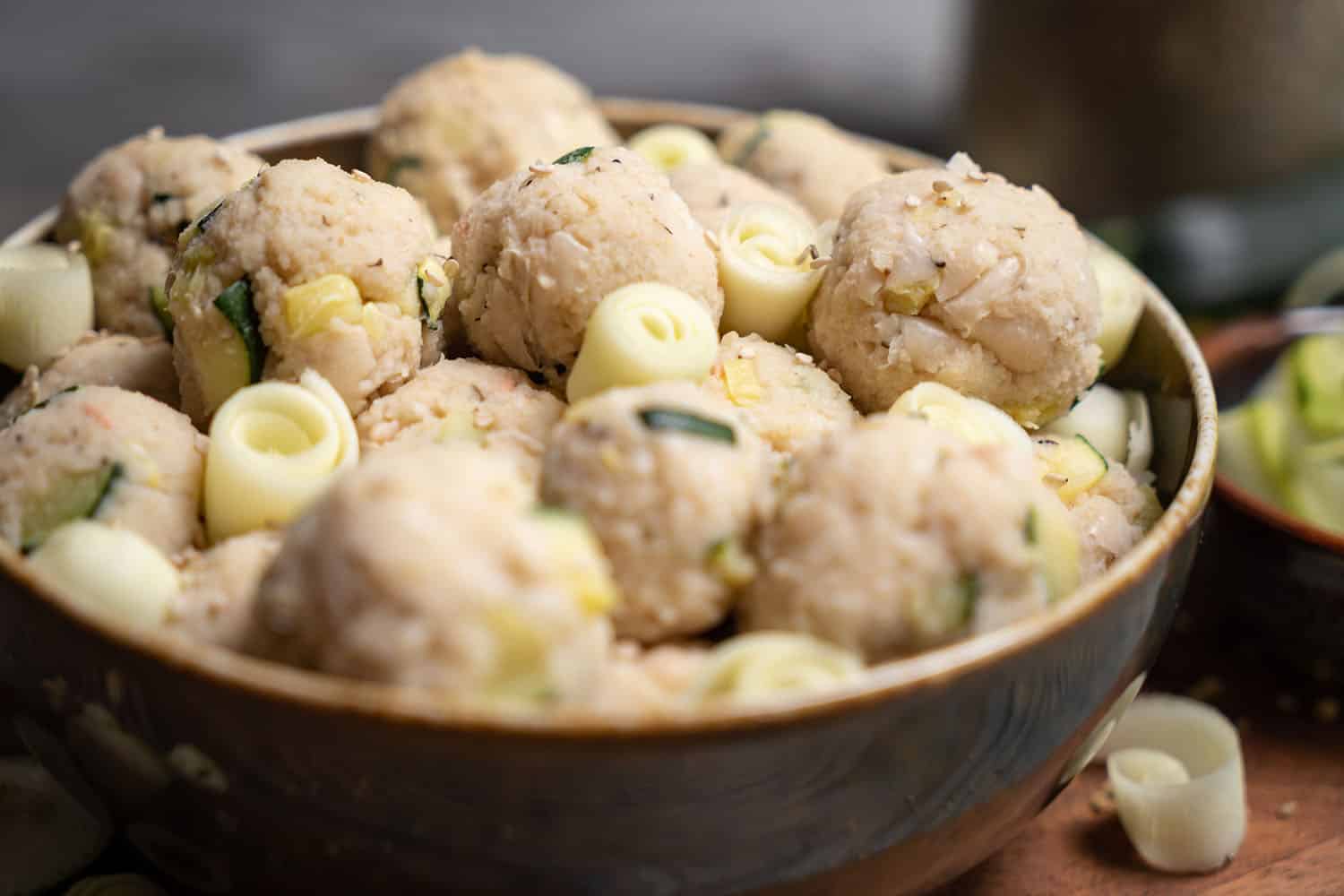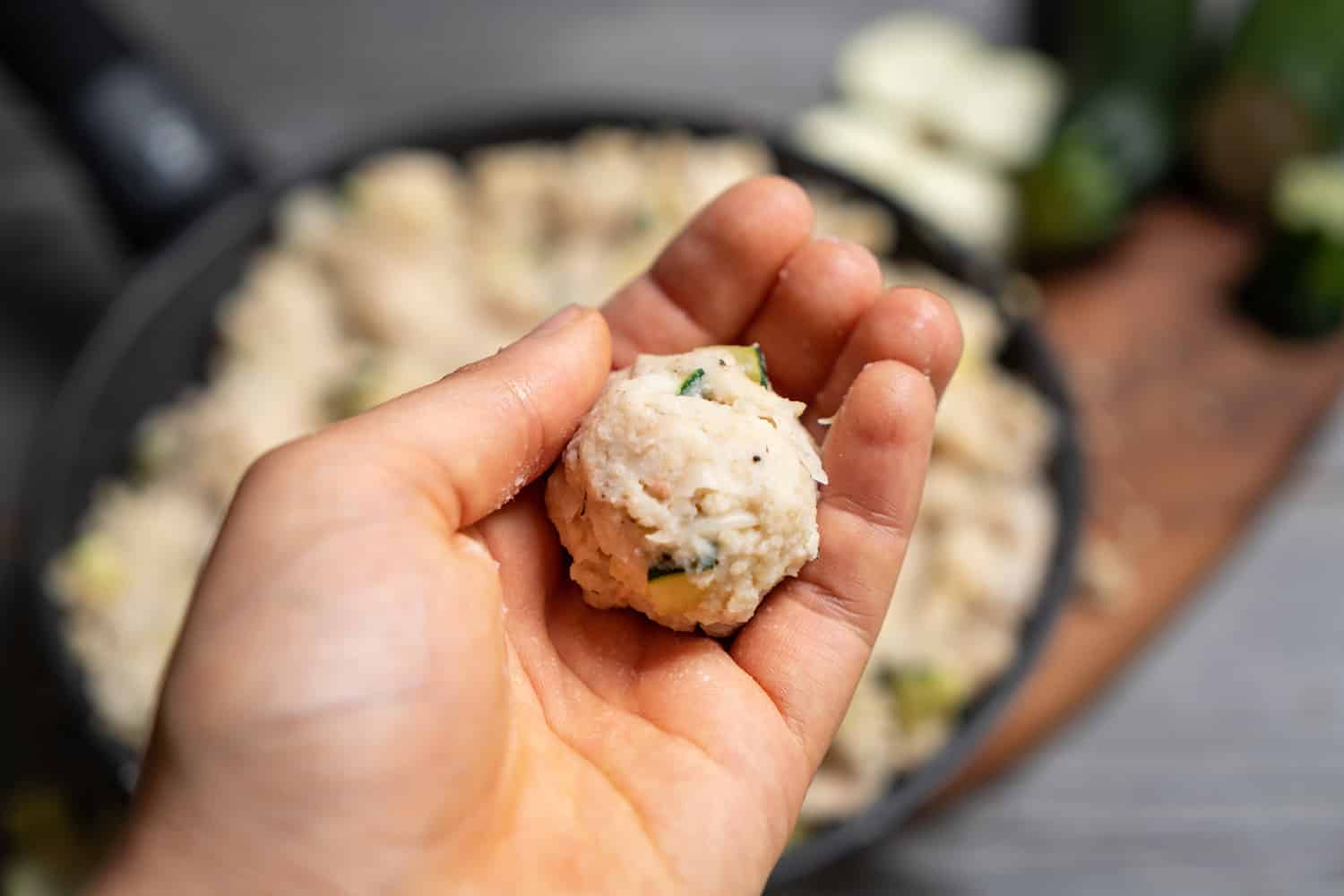 Form small balls out of the mixture. This works best with slightly moistened hands, then it sticks less.