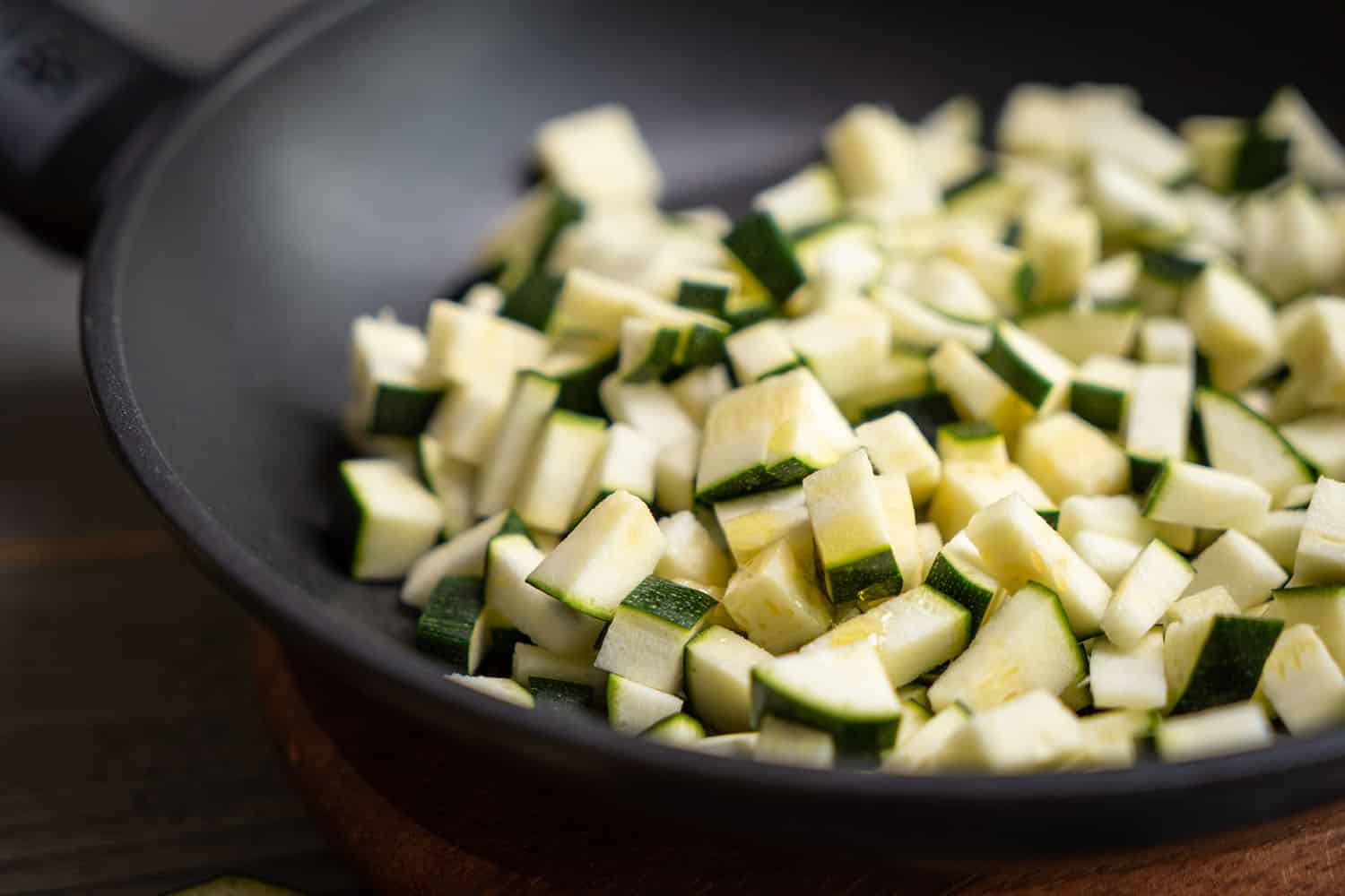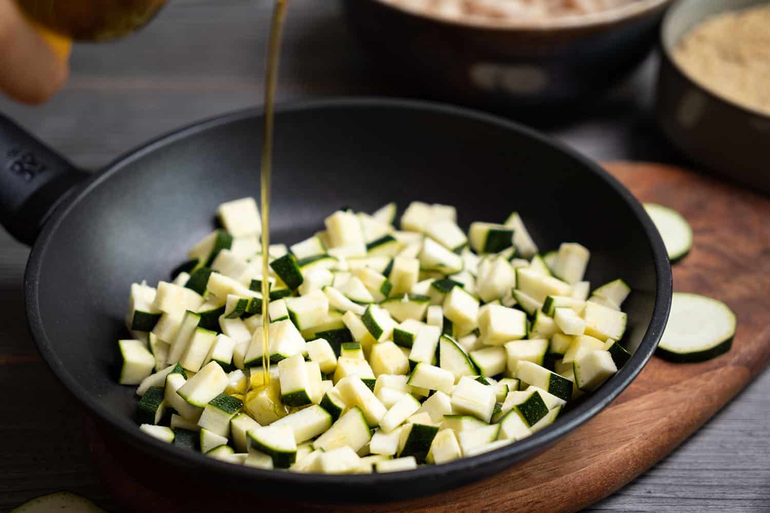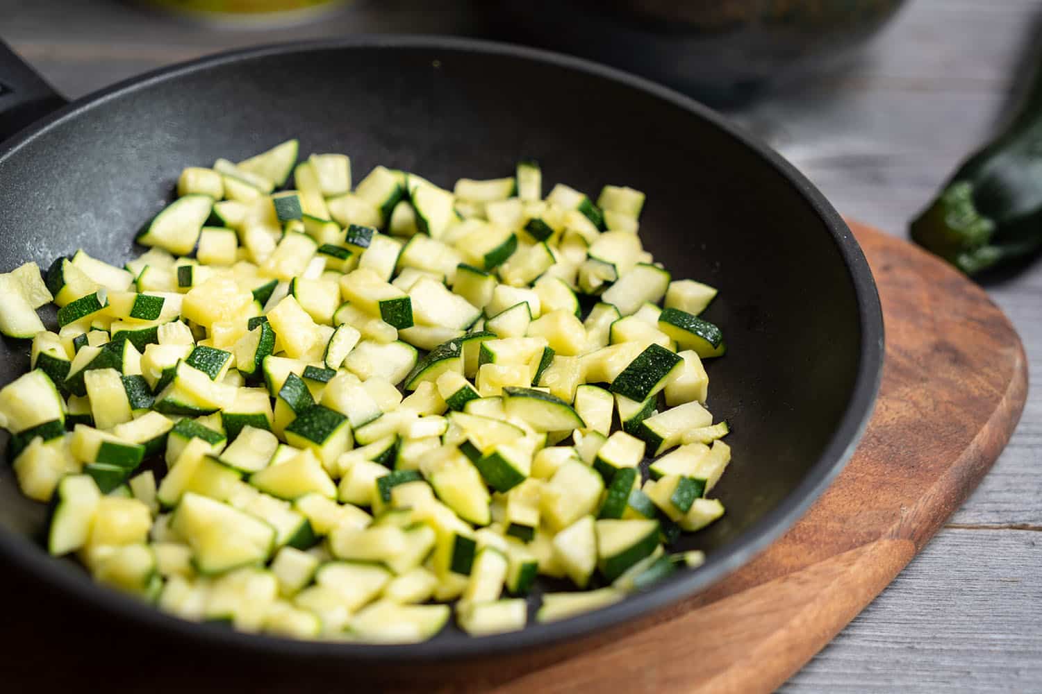 Cut the courgettes into small pieces.