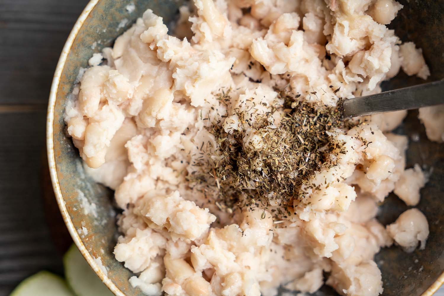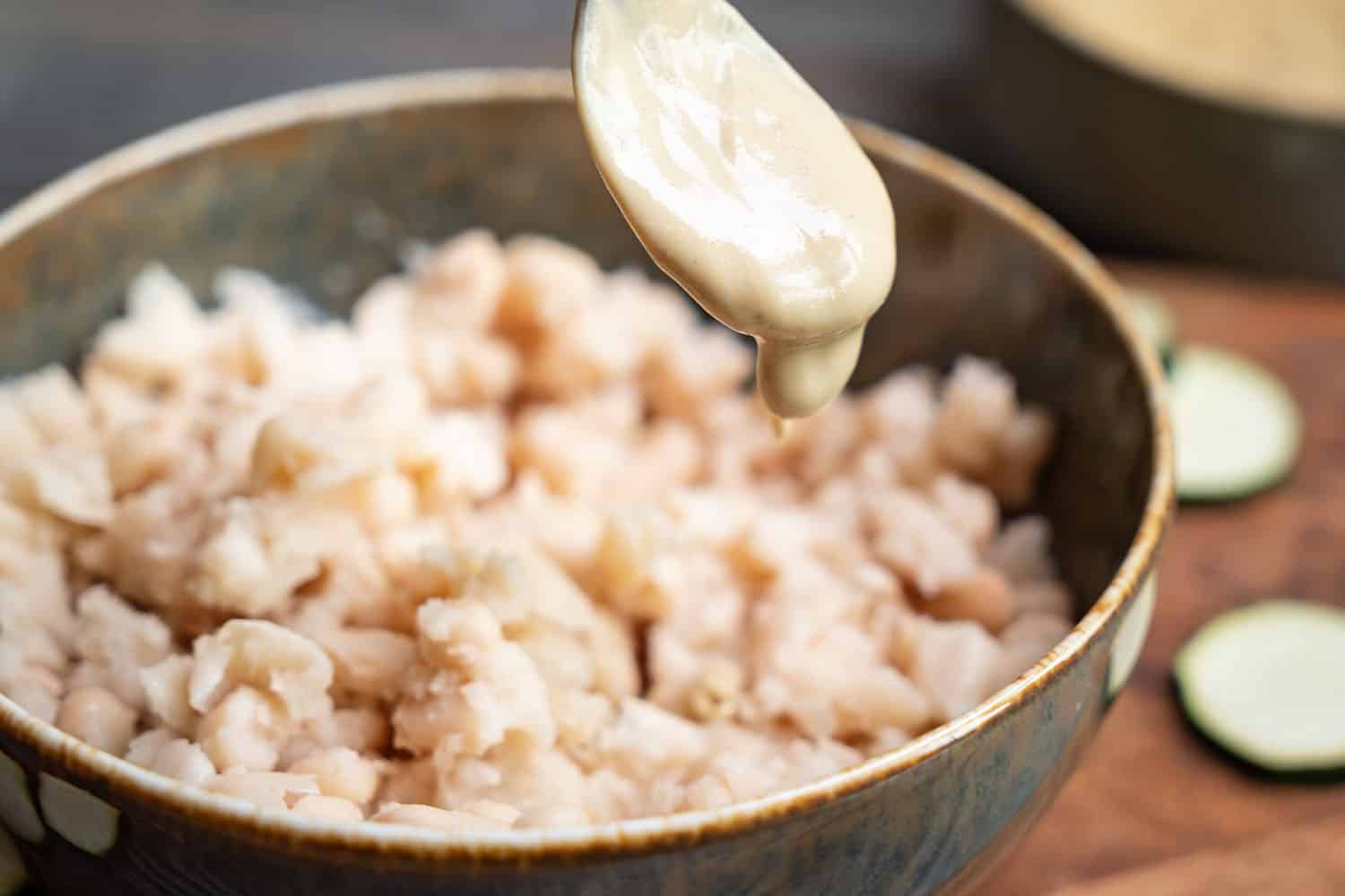 Add the savoury, cashew puree, V-Complete and salt to the mashed beans. Mix well.