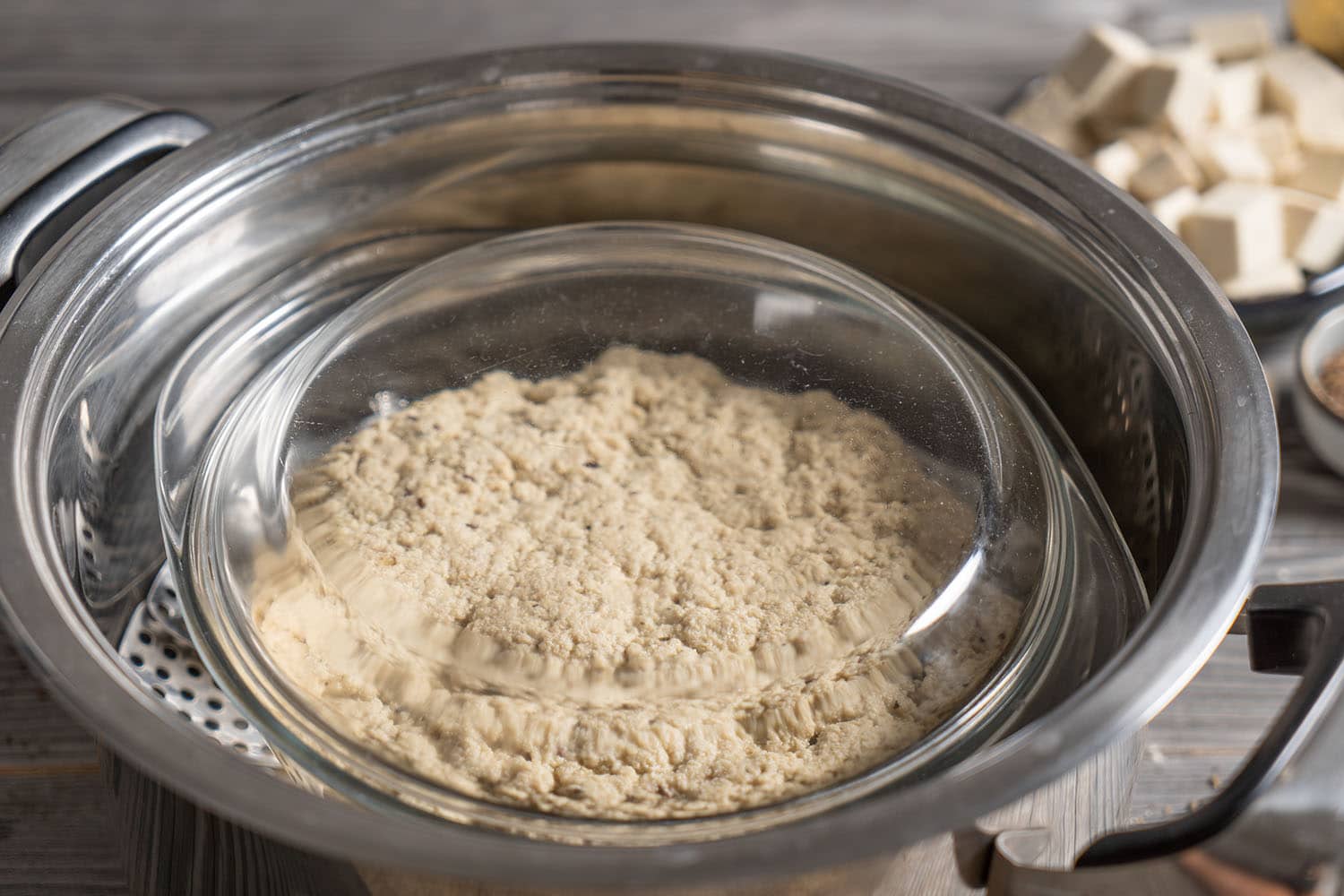 Steam for an hour, let cool and pour off excess water. Voilà.