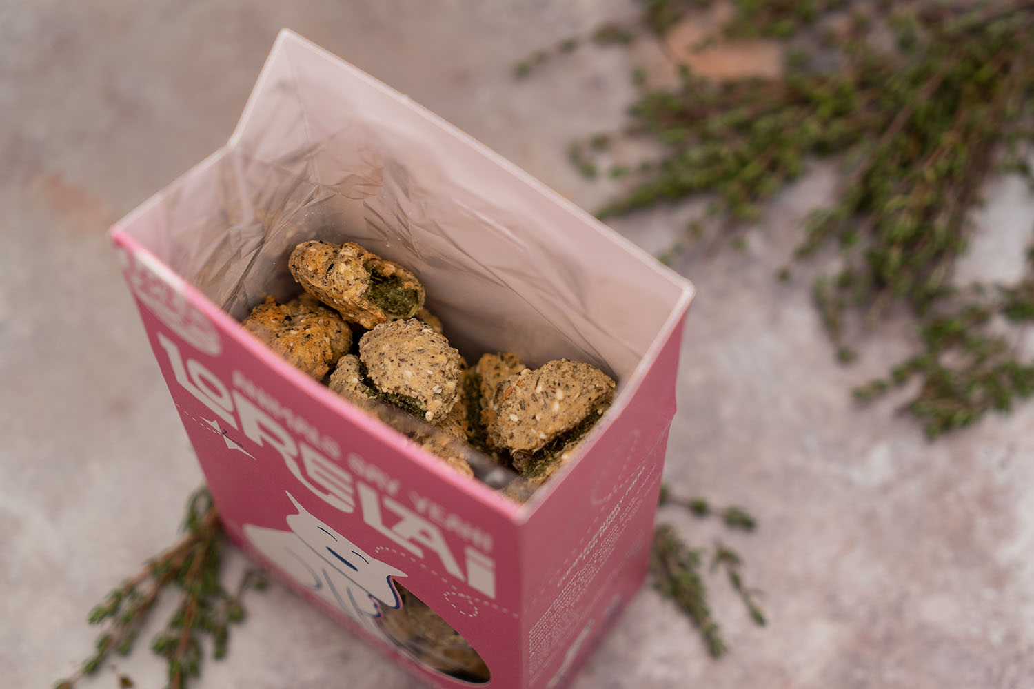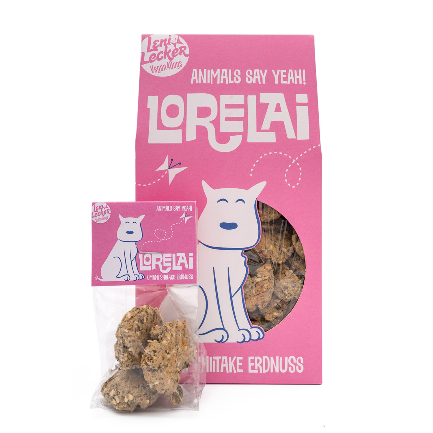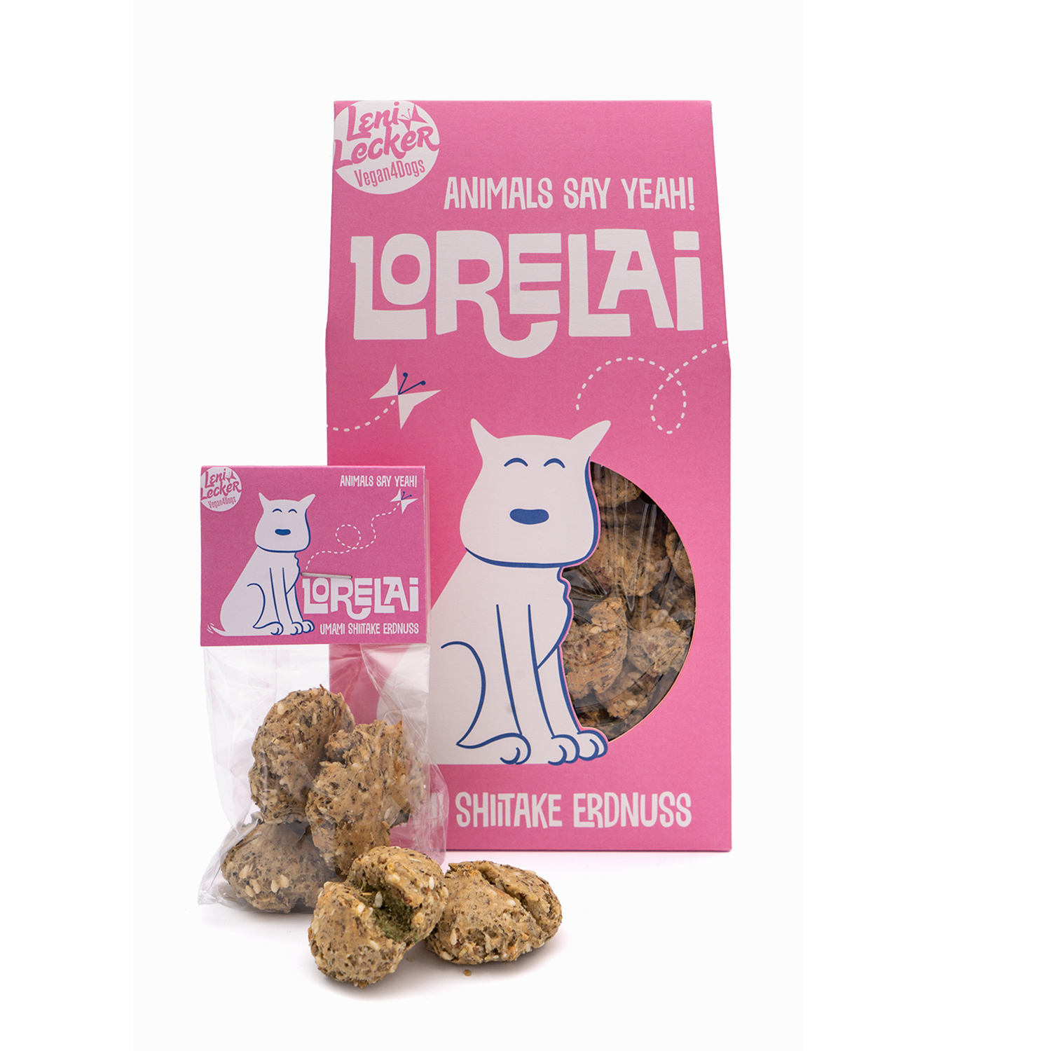Meine tiefe Freundschaft mit Eddie hat mich zu Lorelai inspiriert. Ich verstecke für die kleine Schnüffelnase die Knusperkekse, kuller sie ihm zu, oder er snackt sie mir direkt aus der Hand. Eddie läuft das Wasser im Maul zusammen beim herzhaften Geschmack von Shiitake und Erdnuss verfeinert mit den duftenden Kräutern Thymian und Rosmarin.