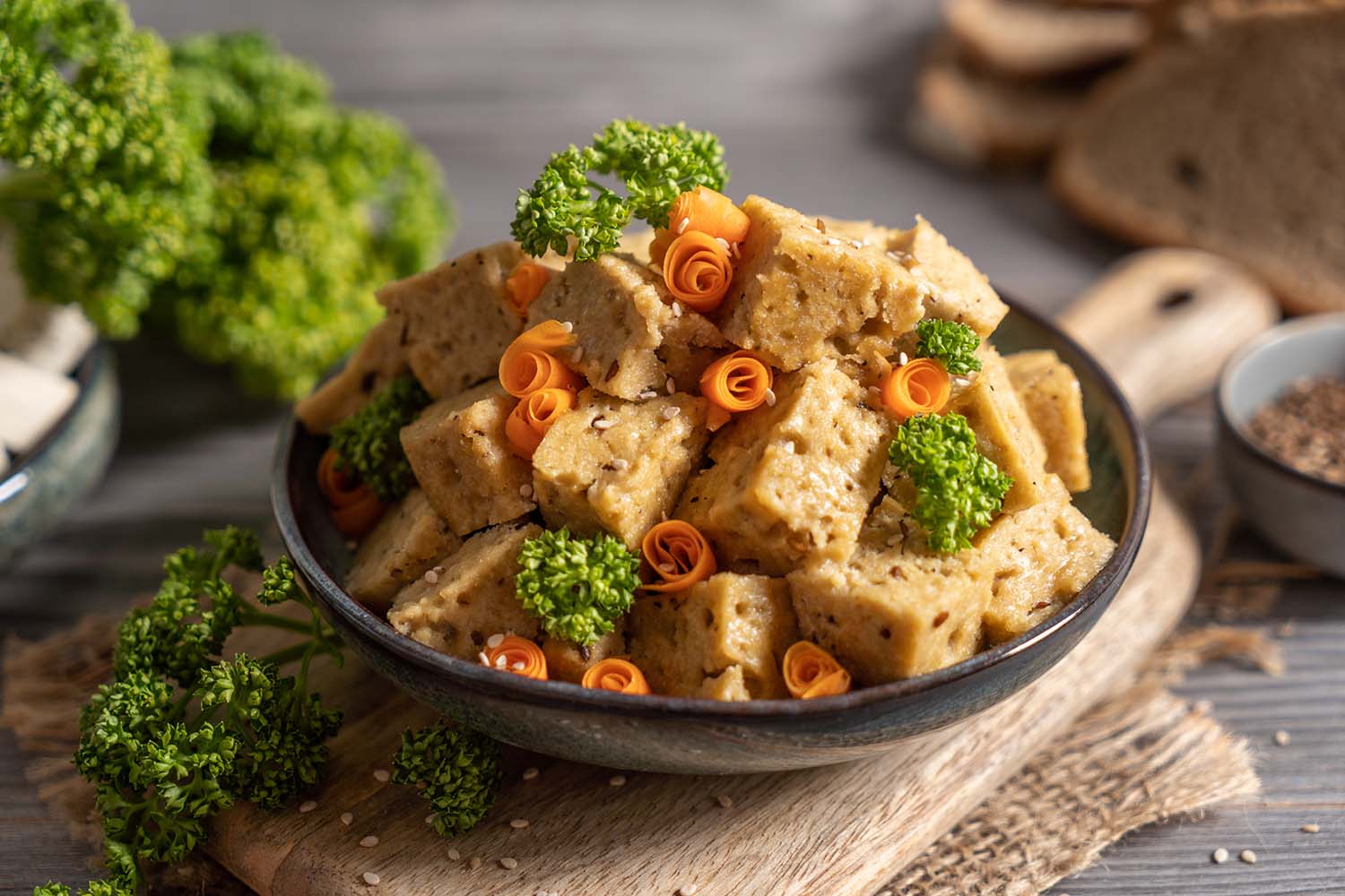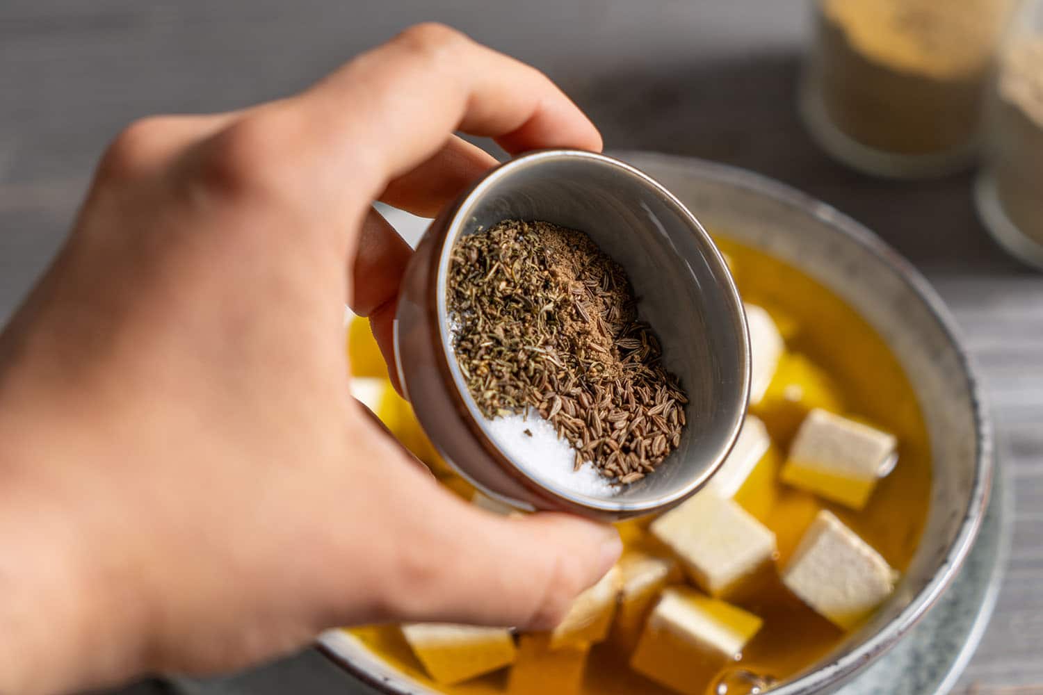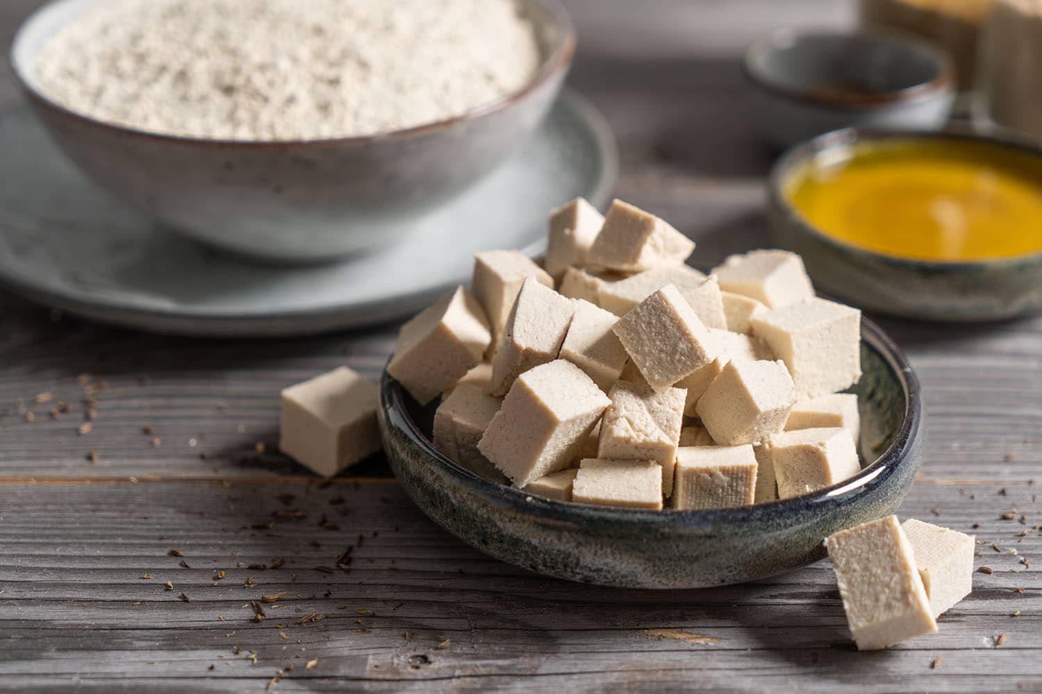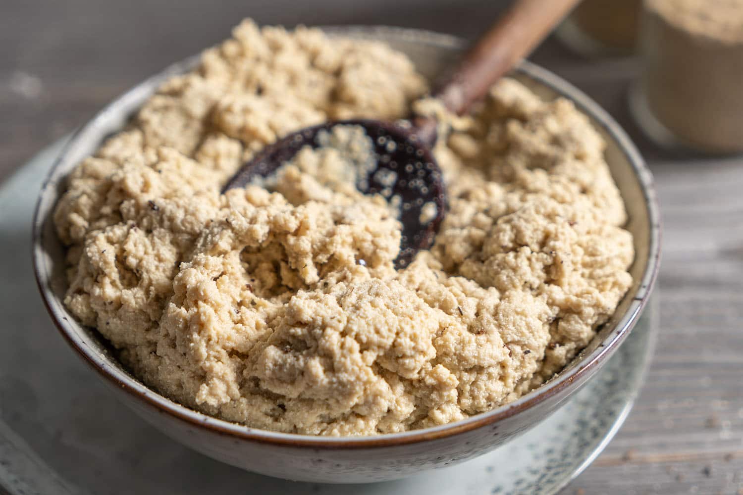 Anschließend das Glutenpulver dazugeben, unterrühren und kurz zu einem Teig verkneten.