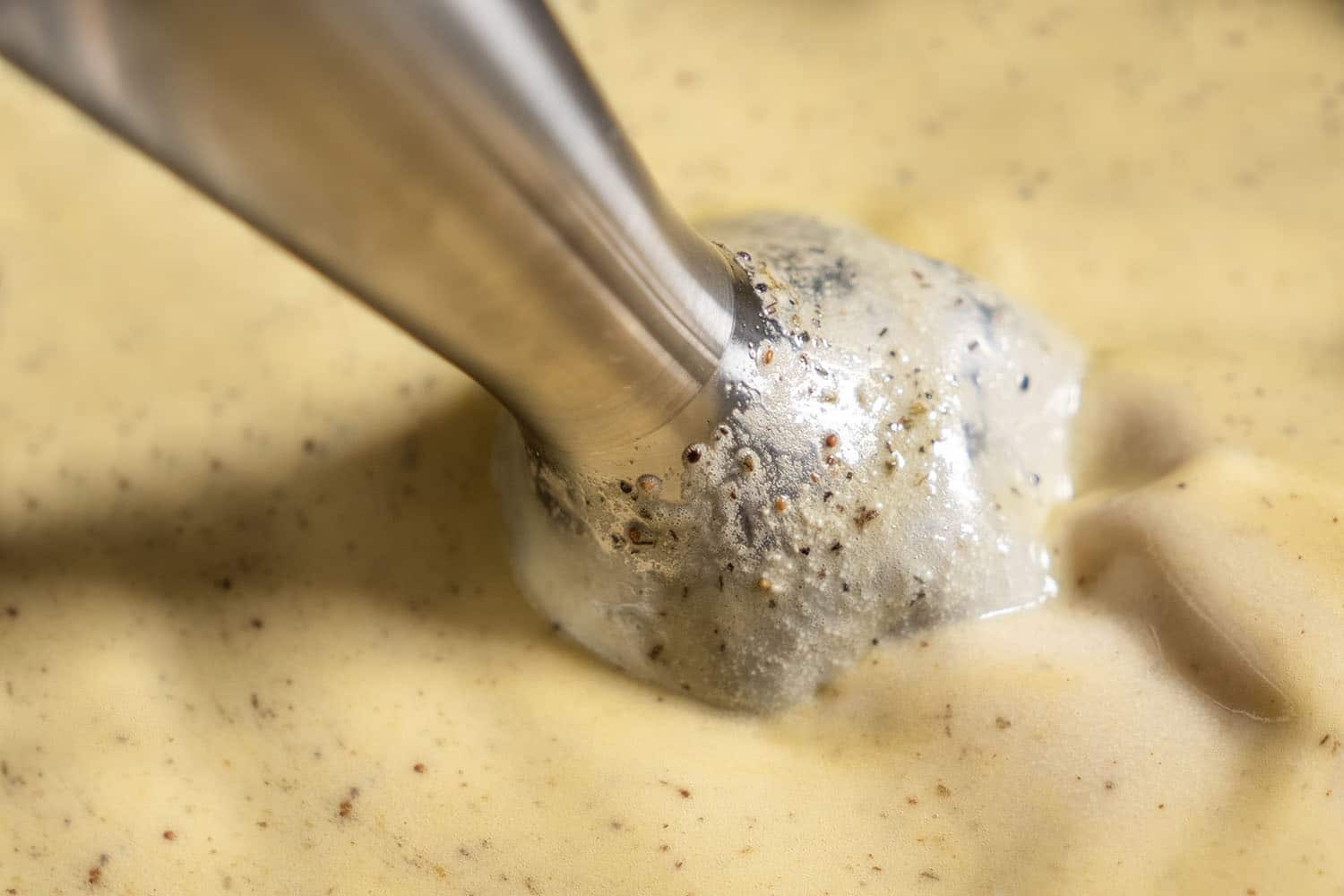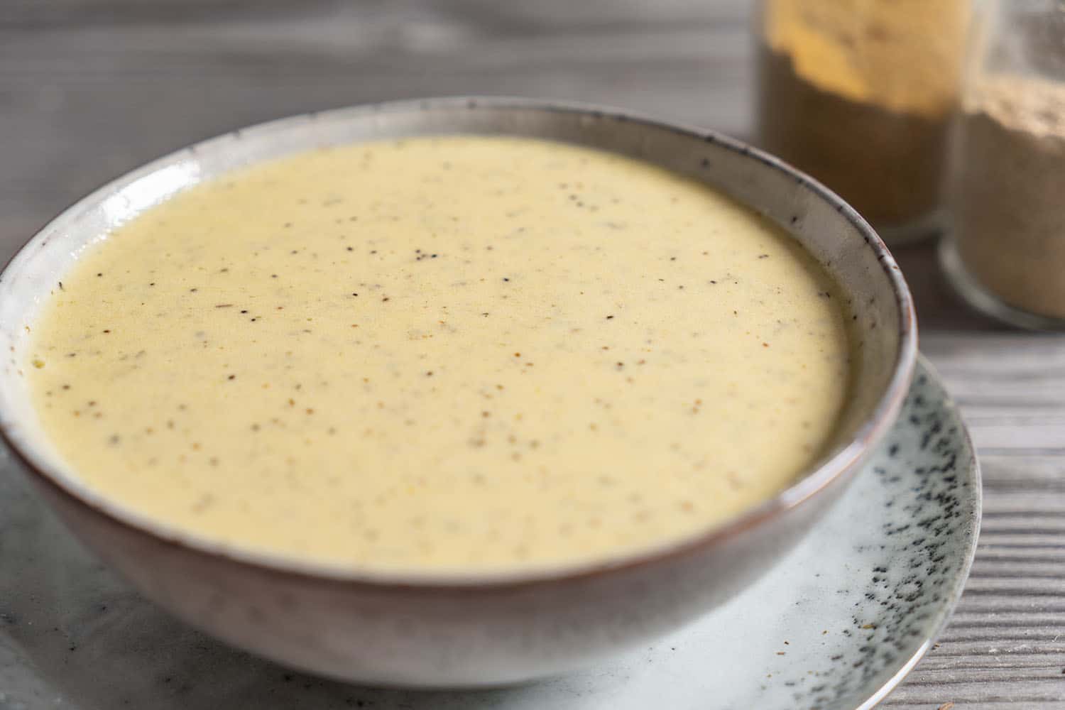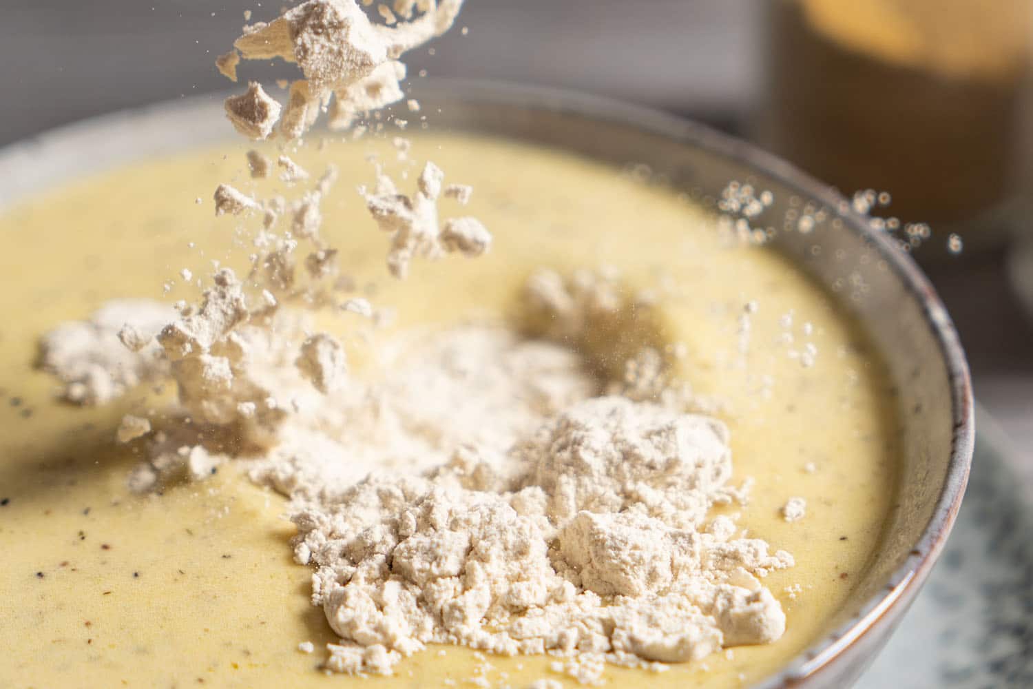 Alle Zutaten bis auf auf das Glutenpulver mit einem (Stab-)Mixer gut mischen.