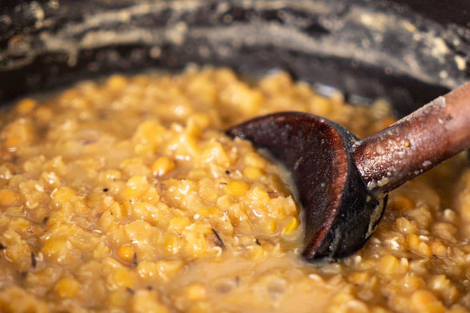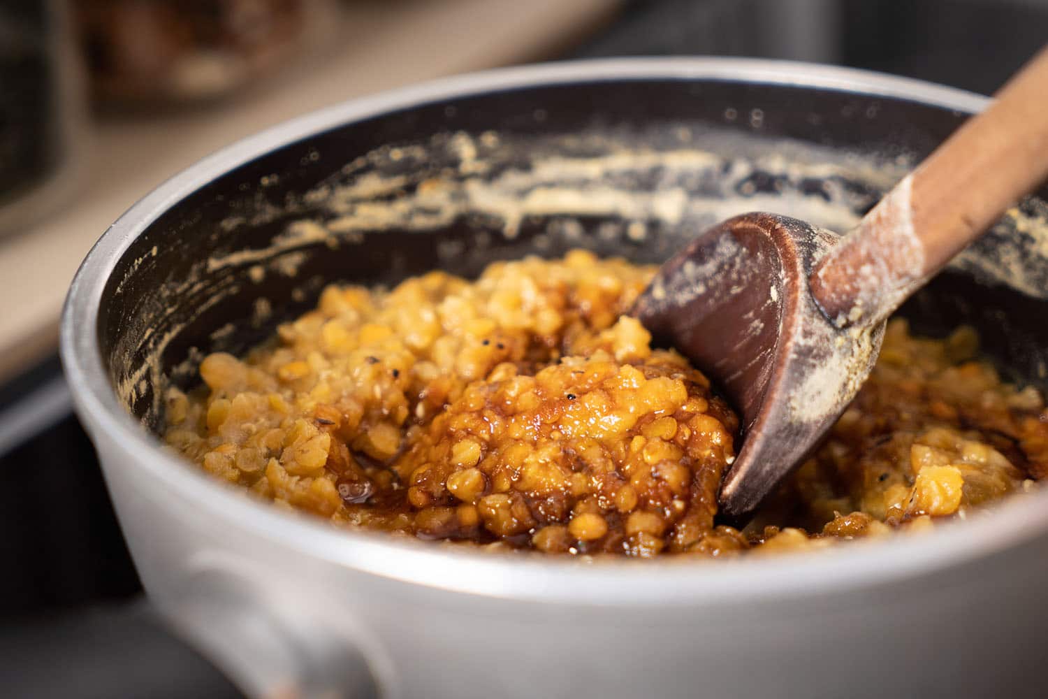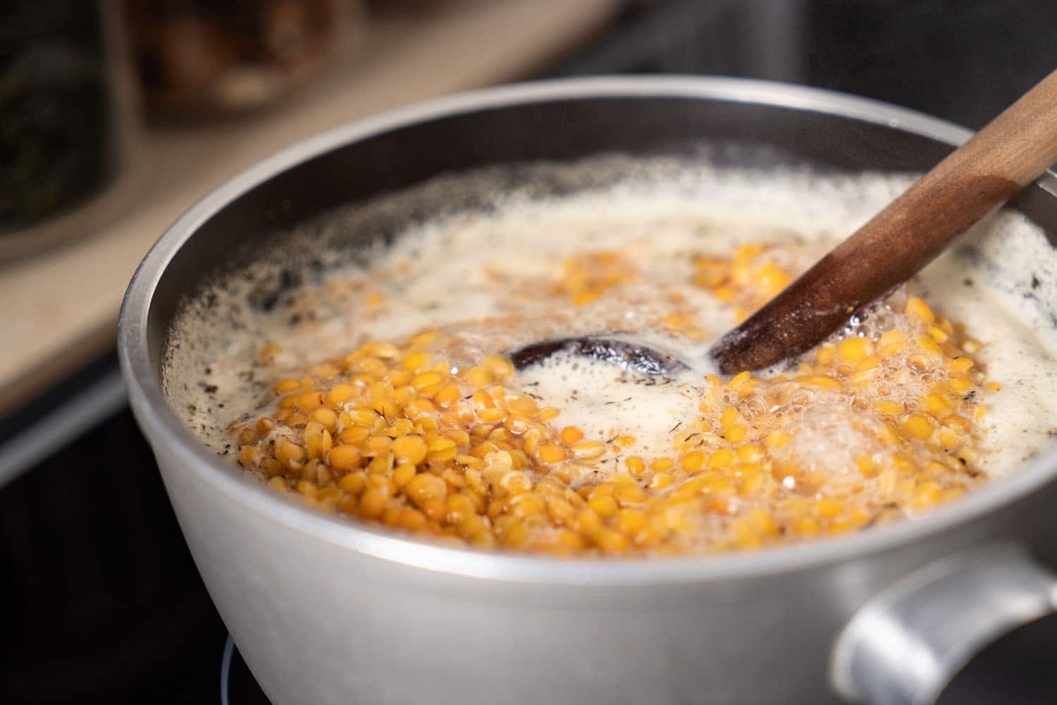 Wer statt roten Linsen eine andere Linsensorte kocht, sollte sie nach dem Kochen pürieren oder mit der Gabel zerdrücken, damit die Hülsen aufplatzen und leichter verdaulich werden.