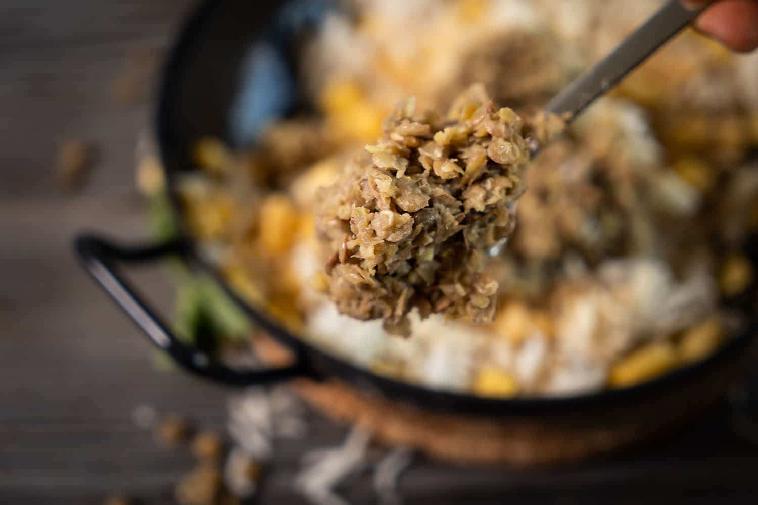 Jetzt werden die Linsen zerkleinern, entweder mit einer Gabel zerdrückt oder im Mixer püriert