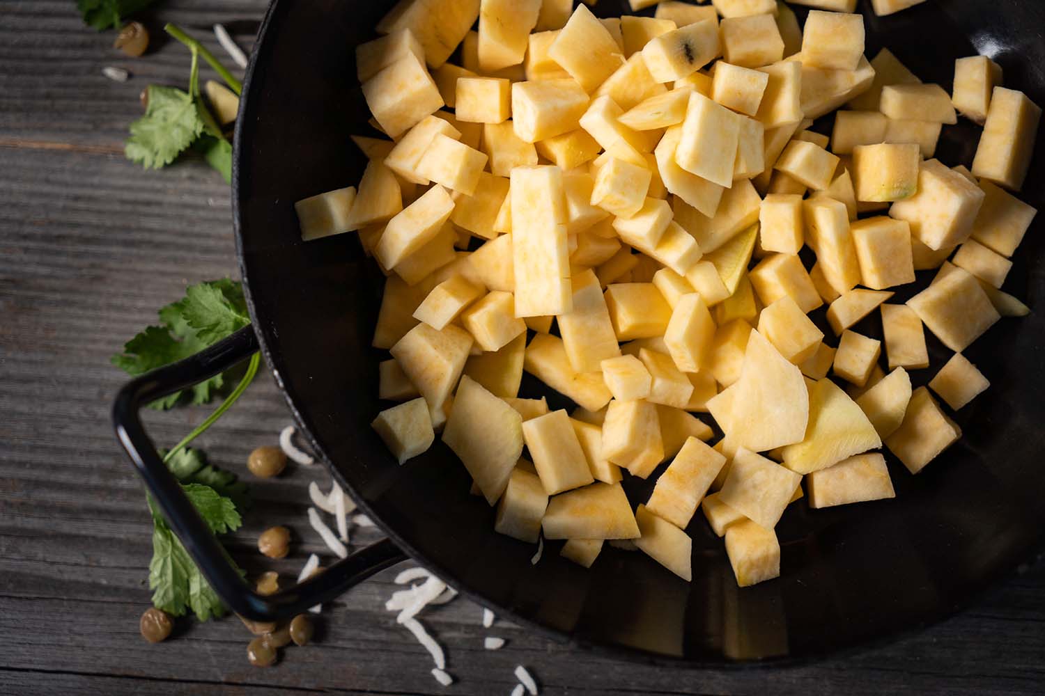 Mit diesem einfachen Linsen-Steckrübenrezept bekommt die Steckrübe, die übrigens in Deutschland zum Gemüse des Jahres 2017/2018 gekürt wurde, eine kleine Bühne. Das ursprünglich aus Skandinavien stammende Gemüse kam im 17. Jahrhundert nach Deutschland, damals noch unter dem Namen „Schwedische Rübe“. Mittlerweile kennt man das Wintergemüse im deutschsprachigen Raum unter den verschiedensten Namen, von Steckrübe über Kohlrübe, Kohlrabe, Butterrübe, Erdkohlrabi, Unterkohlrabi, Bodenkohlrabi, Runke, Runkelrübe, Wruke, Dotsche, Dodschn, Knutsche bis hin zu Kamputze. Doch nicht nur die Namen sind vielfältig, sondern auch die Anbaugebiete, die sich über den Globus hinweg in allen gemäßigten Klimazonen befinden.