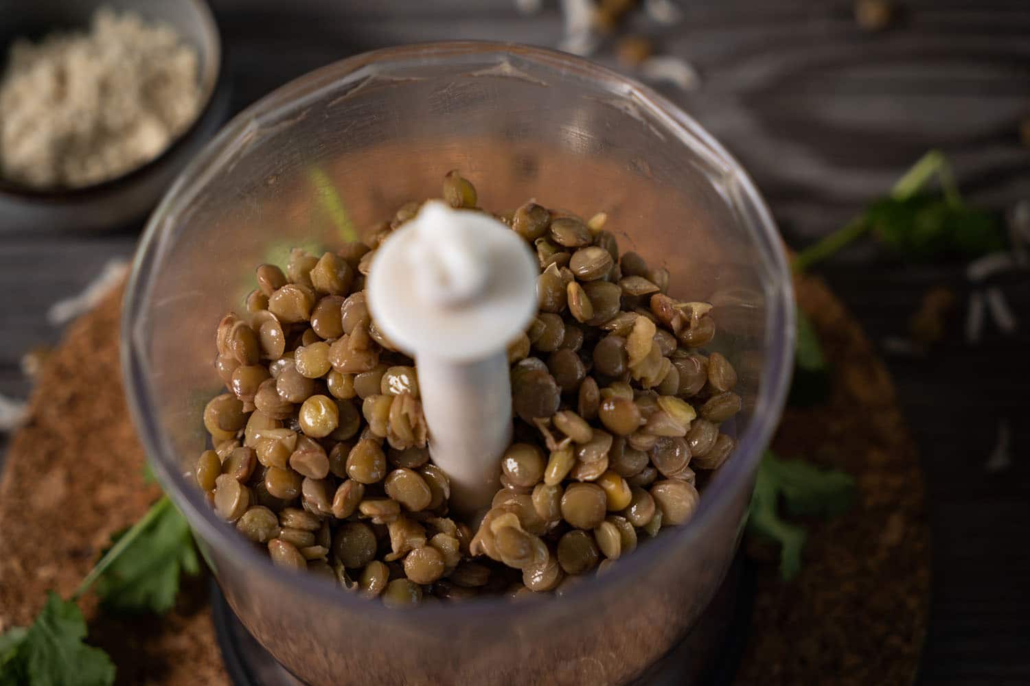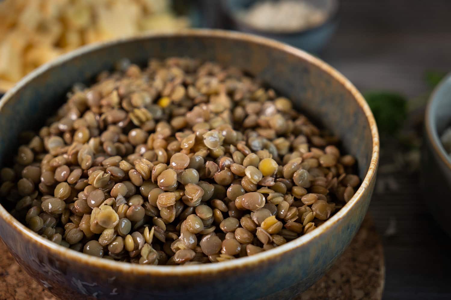 Das andere Drittle der Linsen in eine separate Schüssel geben