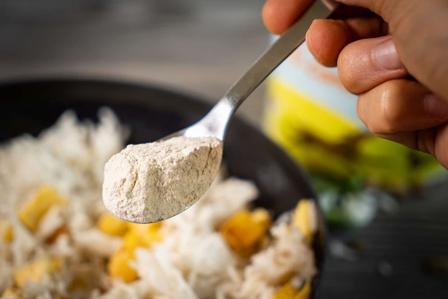 Die Cashews mahlen und mit dem Gericht vermengen
