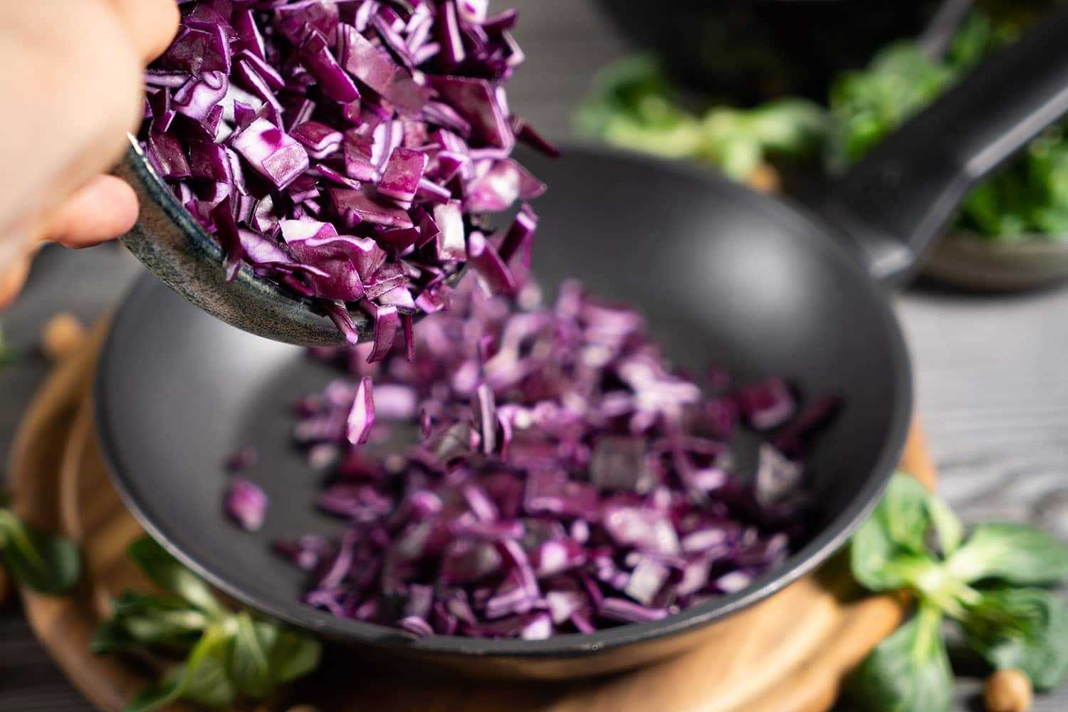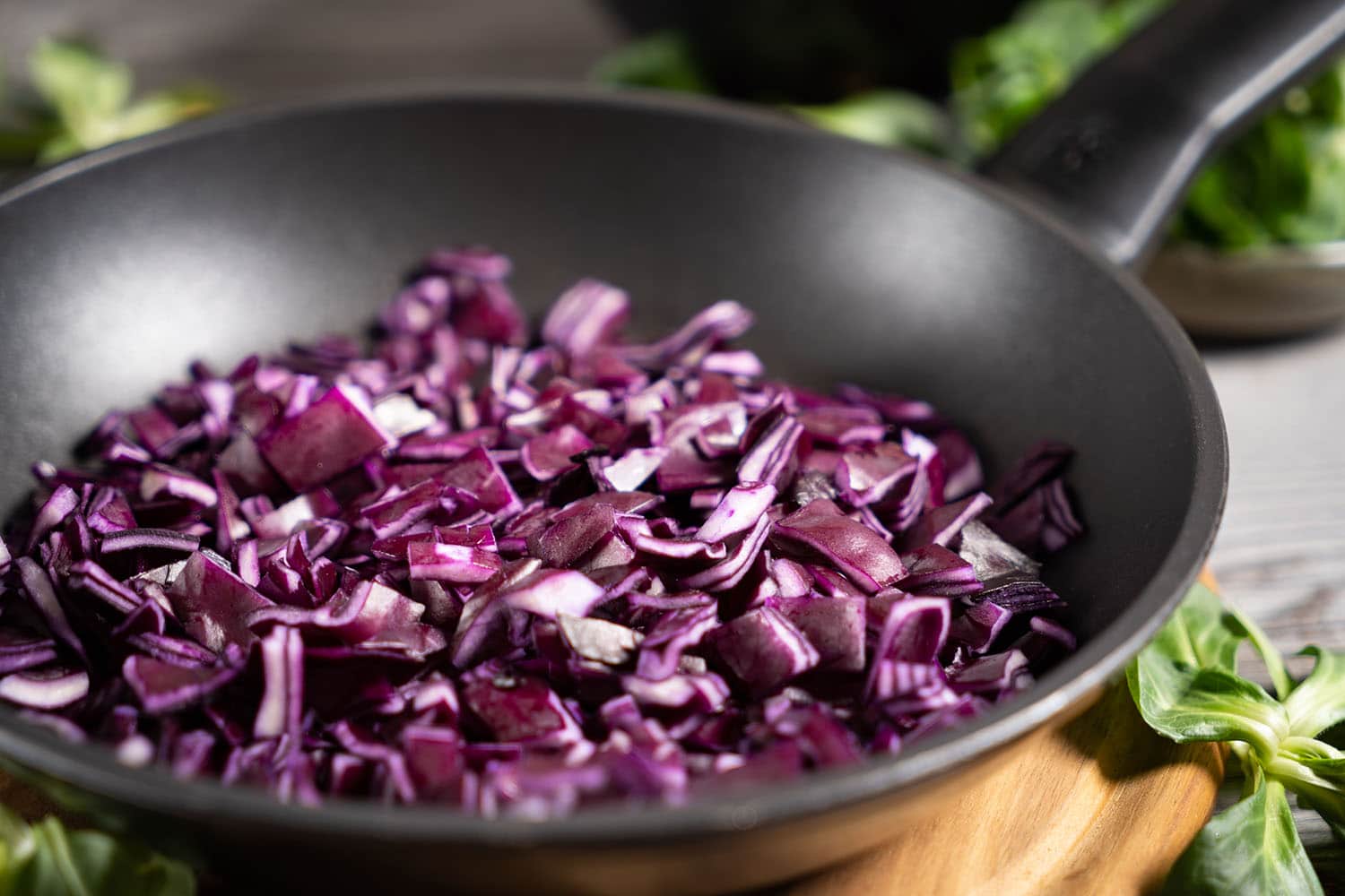 Den Rotkohl klein schneiden und im Rapsöl anbraten.