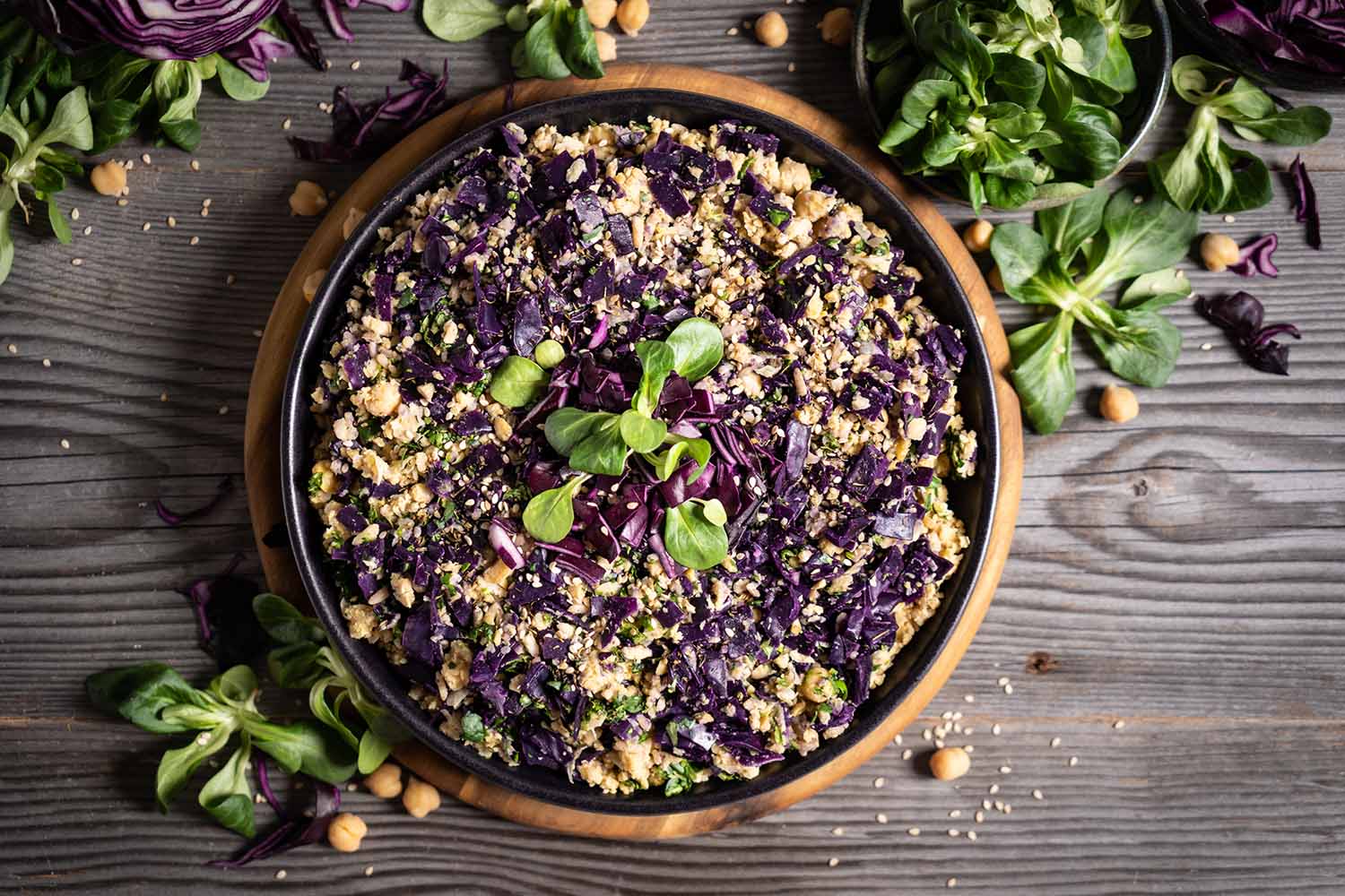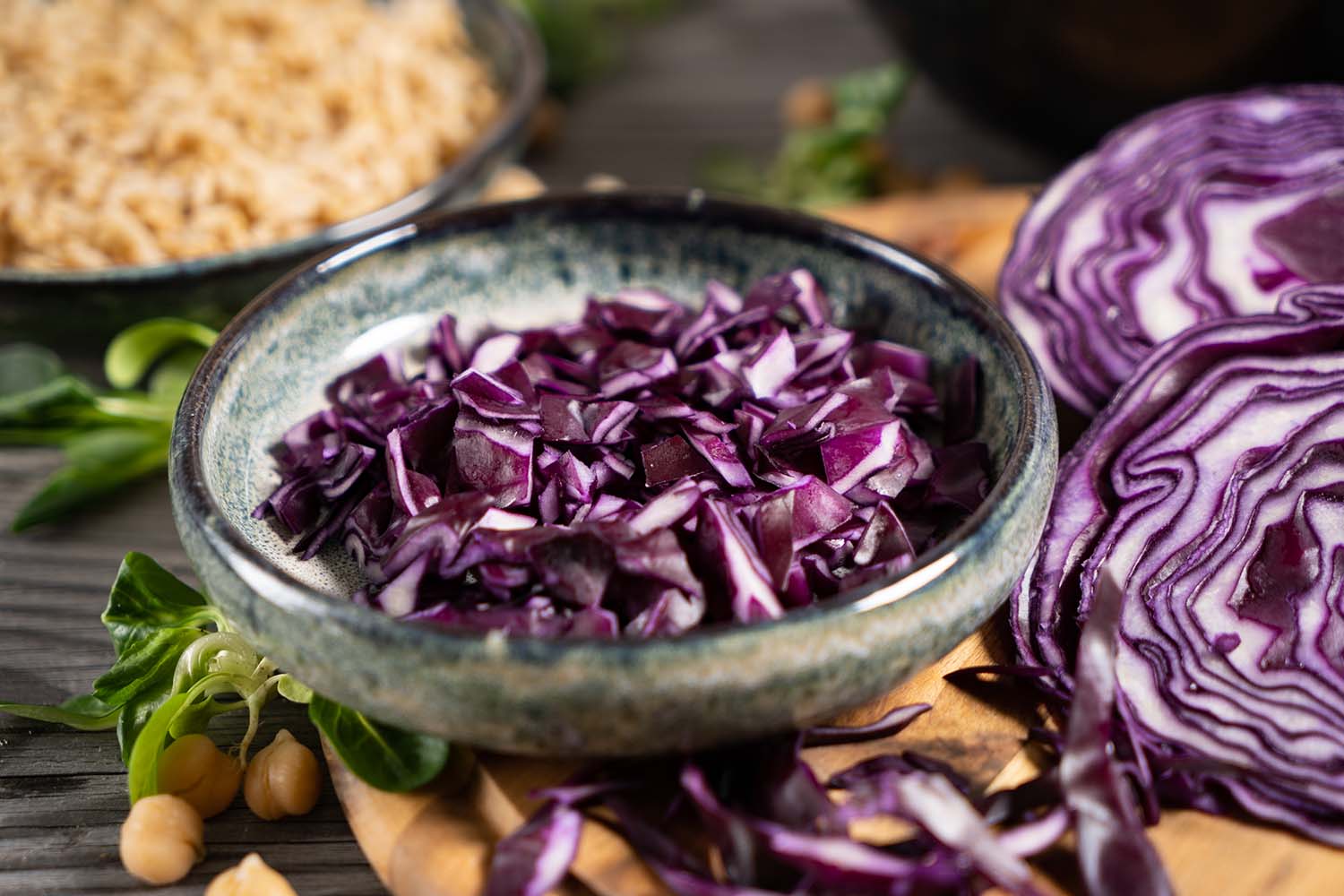 Rotkohl mit Reis und Kichererbsen